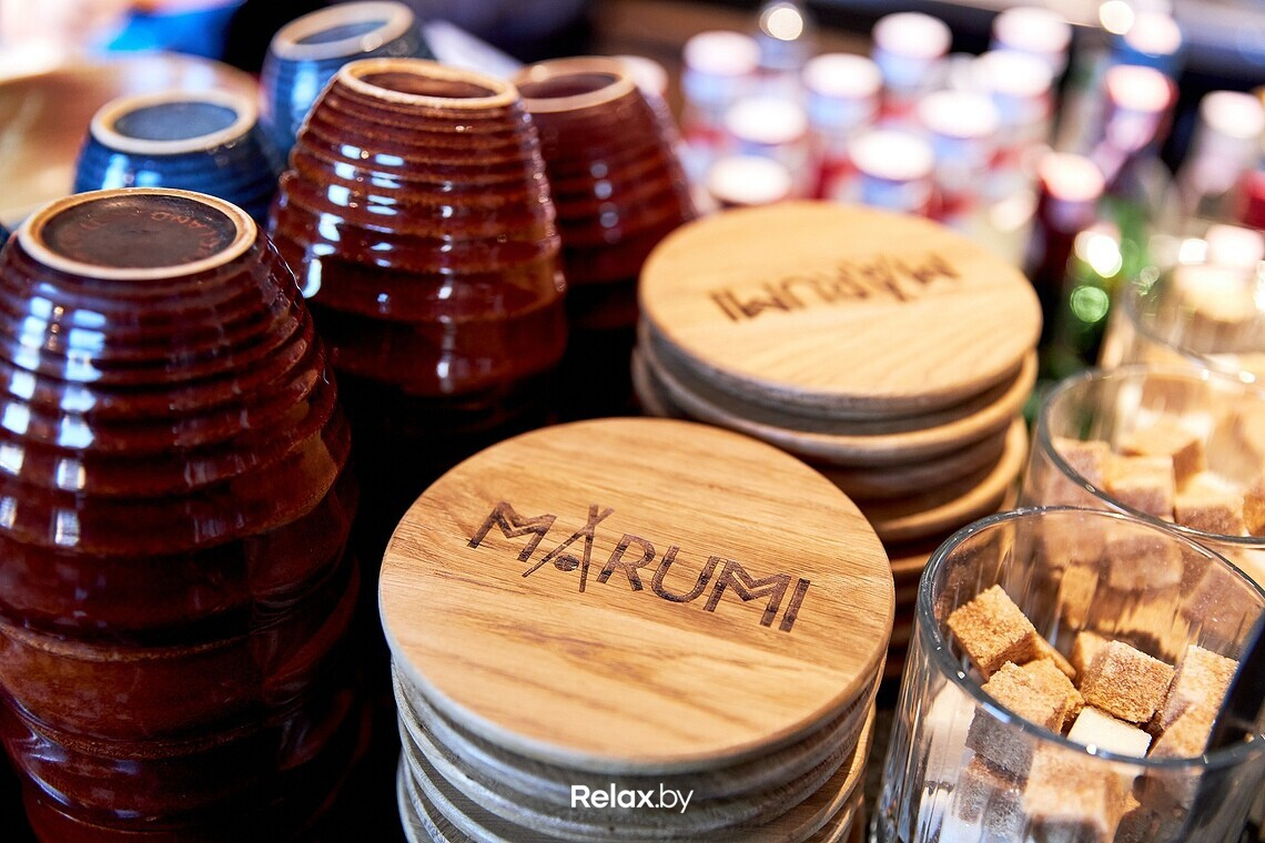 Marumi — это три зала с посадкой на 110-120 человек, много дерева, стильных мелочей и комфортных глазу световых и цветовых решений.