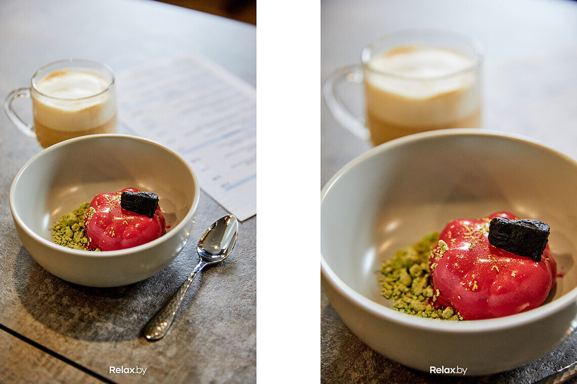 — Отдельно хочется рассказать о десертах, потому что это наша сильная сторона, — отмечает Анна. — Мы сами любим небанальные сочетания, поэтому кондитер предложила довольно нестандартные решения, которые как минимум вызывают эмоции. Например, десерт с пюре малины, ганашем, перцем чили и белым шоколадом с васаби.