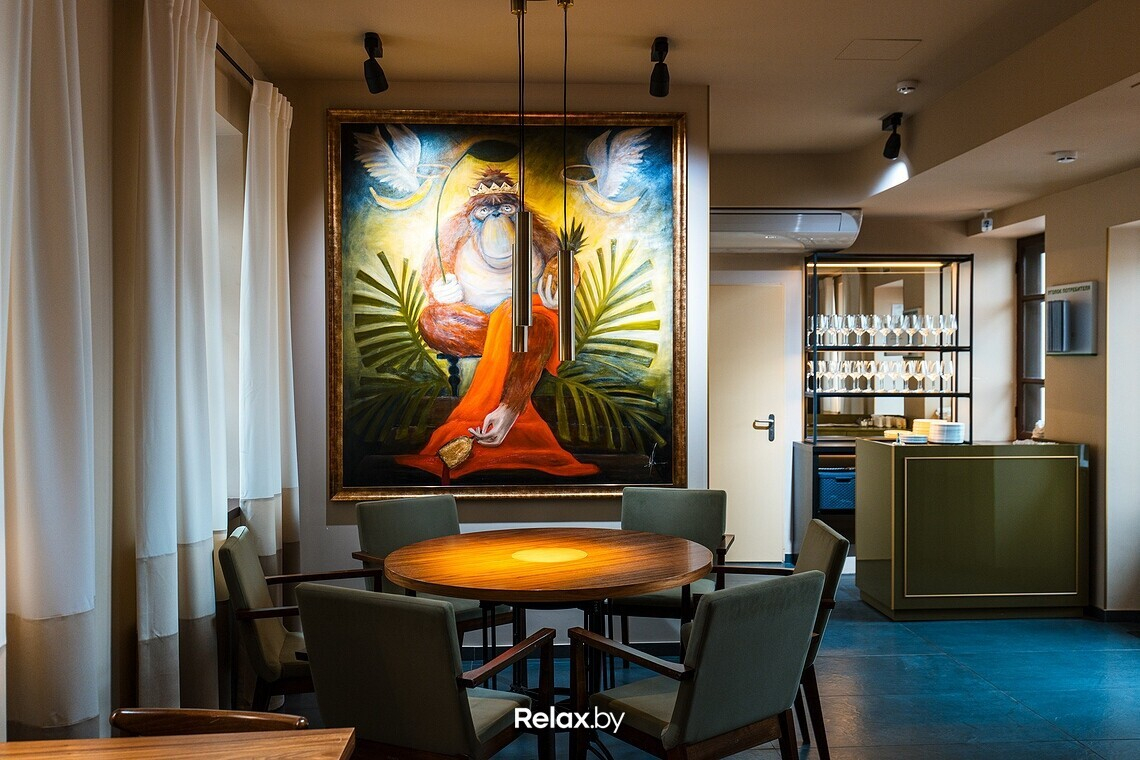 Интерьер бывших владельцев команда переделывать не стала. Осталась в том числе и примечательная картина с обезьяной на троне, и помпезная люстра ручной работы.