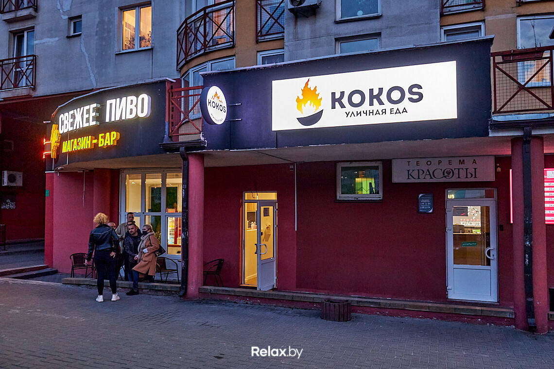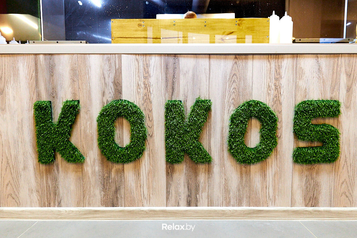 Kokos работает с 11:00 до 23:00. Еду можно взять с собой, а можно остаться на месте.