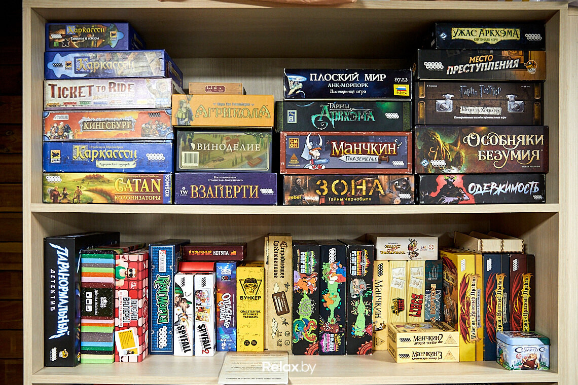 Вторая — непосредственно пространство со столиками и стульями, где можно расположиться и поиграть. Рядом стоит шкаф с играми, в котором порядка 70 позиций: от известных «Монополии», «Манчкина», «Башни», Alias до более сложных вроде «Гарри Поттера», «Места преступления» и др. Есть и семейные настольные игры, например «Котики», «Колонизаторы» и др. Зона игр платная, вход — 10 рублей за весь день.