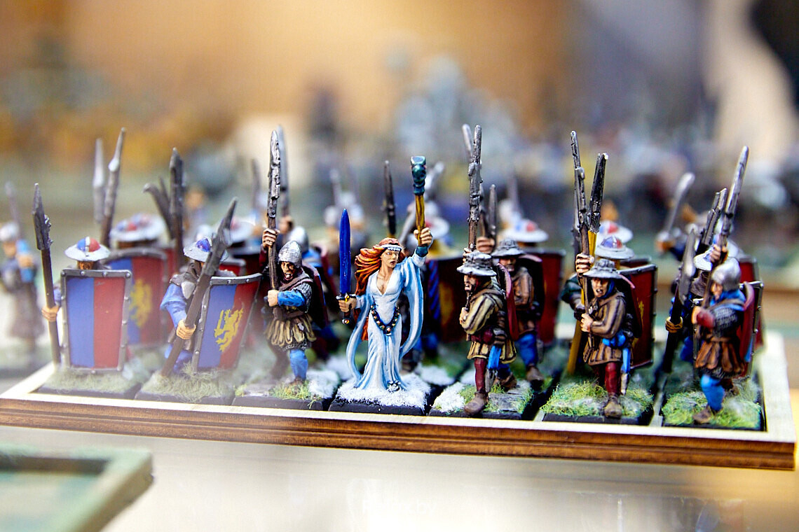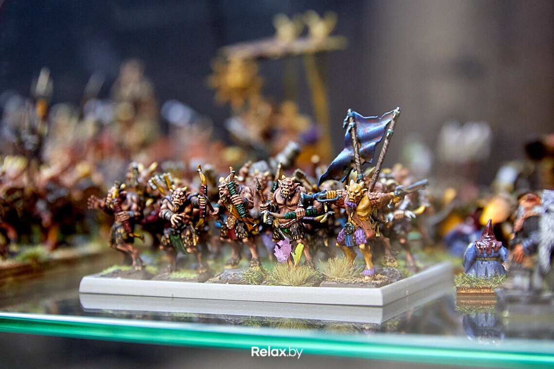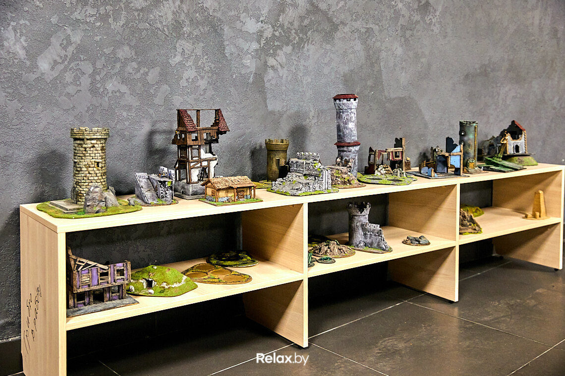 В зале расположены стеклянные шкафчики с наборами миниатюрных фигур из коллекций игроков. Здесь же есть столы, за которыми можно разукрашивать новые фигуры.