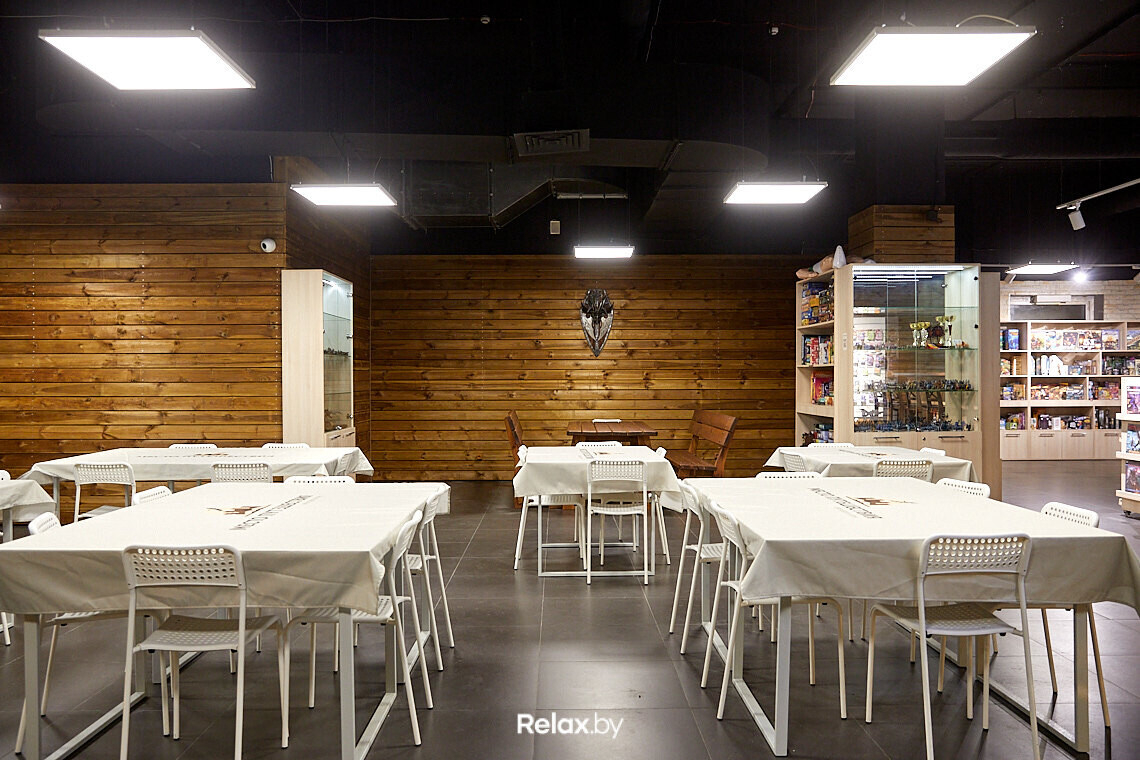 Просторное помещение можно разделить на две зоны. Первая — магазин настолок, который вас встречает сразу на входе. В нем 500-700 товаров: настольные игры, аксессуары, игровые фигуры и миниатюры. Цены на игры — от 20 до 450 рублей.