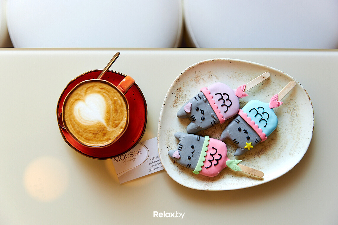 Главные в Mousse — торты и десерты. Ставку делают на натуральность и небанальный вид. Так, кейкпопсы долгое время ассоциировались с круглой формой, однако здесь им готовы придать любую трендовую форму. На волне острой популярности Among Us появились кейкпопсы с героями игры.