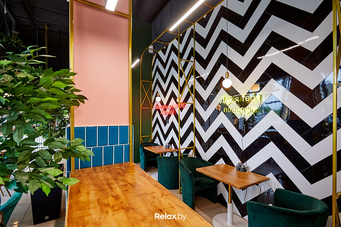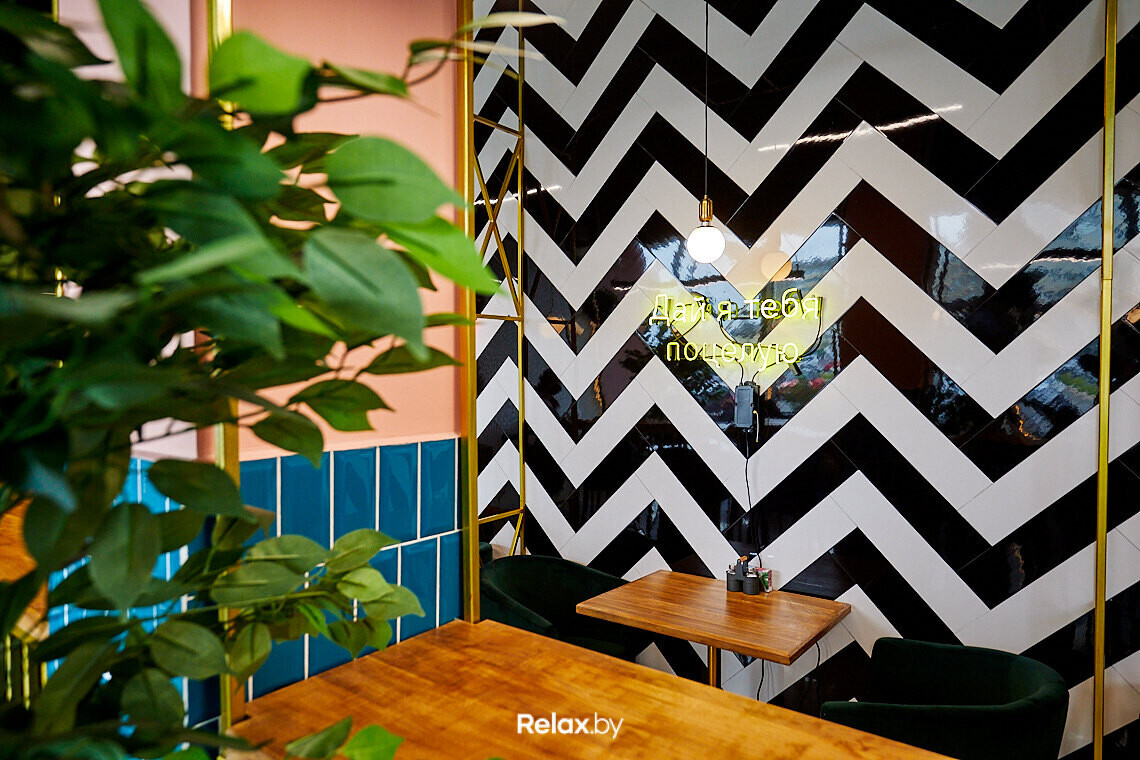 Кафе открылось фактически за месяц. Весь апрель команда наводила порядок в зале, оставшемся от предыдущих владельцев. Кардинальных изменений не хотелось: помещение под будущее кафе выглядело современно и стильно благодаря глянцевой плитке, мягкой мебели, зелени и неону.