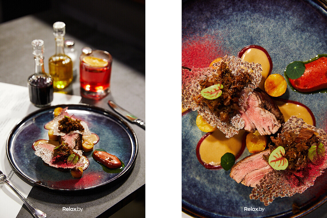 — Около 3 месяцев мы кропотливо прорабатывали меню и очень гордимся нашим шеф-поваром. Он абсолютно точно уловил наше видение. Строится кухня во многом на принципах молекулярной гастрономии: лимонный снег, морковные чипсы, чипсы изо льна, гель из клюквы, пивной лук… Подача почти каждого блюда — небольшое гастрономическое шоу.