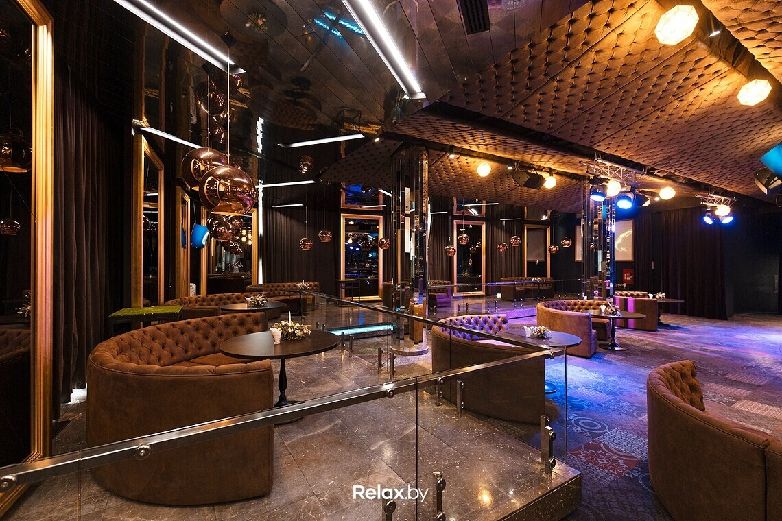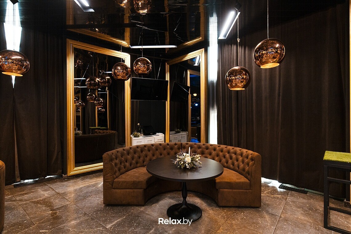 В октябре 2020 года в этой локации открывалось заведение в духе американских «ревущих двадцатых». Кое-что в интерьере от него осталось, в остальном — совершенно новый концепт. В зале все также просторно, много зеркал и отражающих поверхностей, удобное зонирование с диванами для больших компаний.