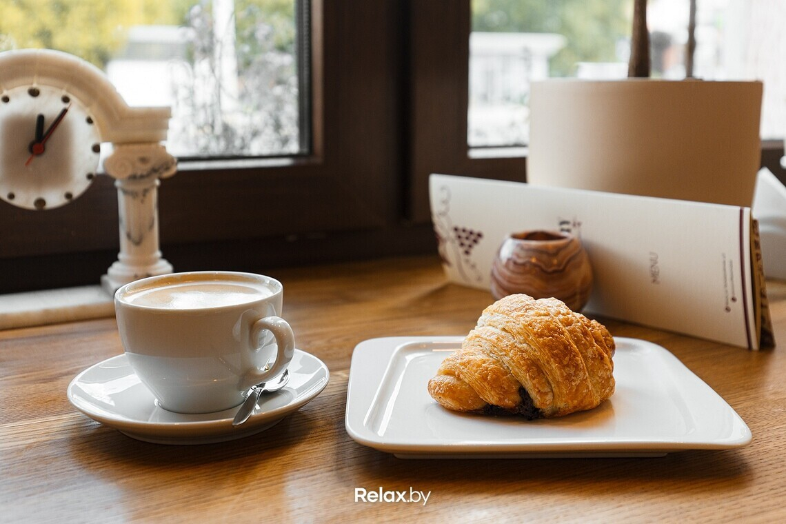 Учтите, что с 8:00 до 11:00 в заведении действуют счастливые часы. Круассан с кофе обойдется в 5 руб, круассан с начинкой и кофе — 6 руб, синнабон с кофе — 4,5 руб, а сэндвич с кофе — 8,5 руб.