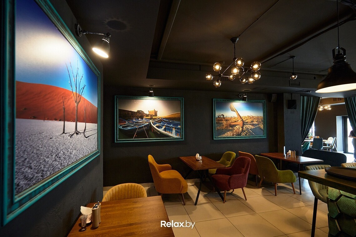 Первое, что бросается в глаза в обоих залах, — фотоработы Игоря Пацевича. Все кадры, представленные в Spot, были сделаны во время его многочисленных путешествий и больше напоминают картины. Сахара, Португалия, Тибет… Пока ожидаешь блюдо или напиток, начинаешь в хорошем смысле этой фразы теряться в пространстве.