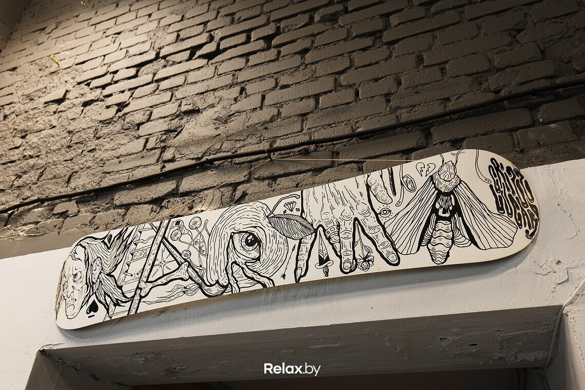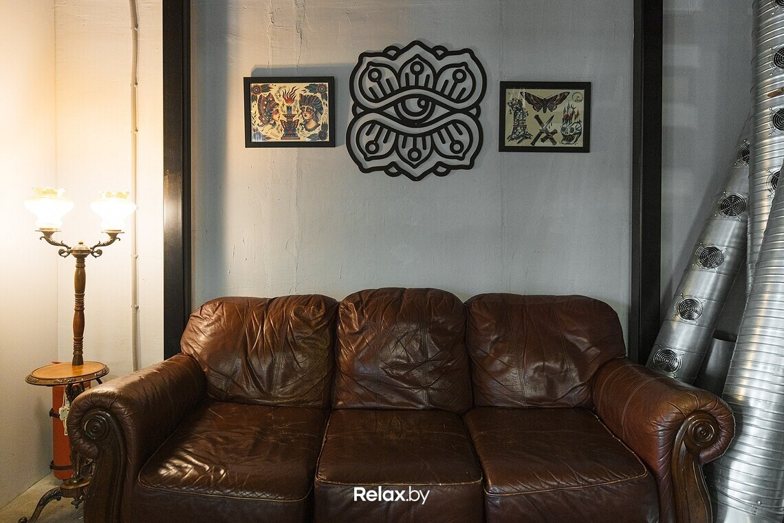 В интерьере почти все сохранилось: вновь серые стены, та самая мебель «дерево с металлом», картины с эскизами татуировок. Однозначно стало просторнее и светлее. А еще появился второй уровень с классной панорамой на первый этаж бара.