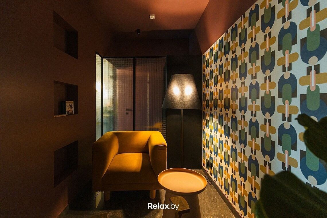 Одна из фишек дизайна — тематические панно на стенах, выполненные в стиле арт-ню. В интерьере действительно в разных формах преподносится легкий эротизм. Однако выполнено все довольно артистично, без оттенка вульгарности.