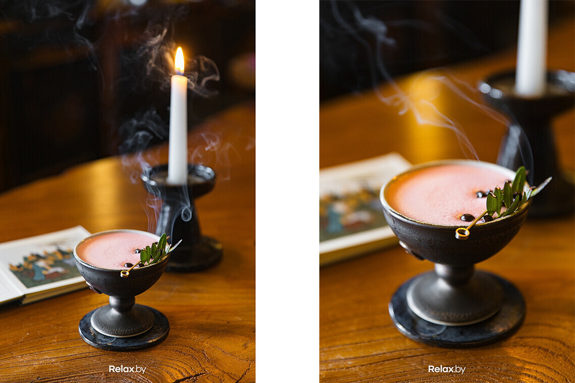 Андрей рассказывает, что на некоторый период времени понадобилось полное погружение в тему: изучение мифов, преданий, легенд. В результате было собрано огромное количество референсов, которые и нашли свое воплощение в баре. Что-то — в интерьере, что-то — в коктейльной карте. Но основная история здесь про Легендара — вымышленного персонажа, который и является условным хранителем бара.