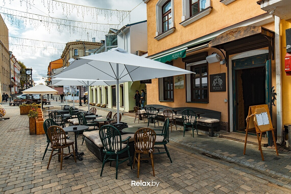 Как мы заметили выше, «Легендар» умеет «подстраиваться» под время суток. Днем здесь уютно пахнет кофе, появляется ощущение, что ты заглянул на завтрак в гостиную в старинном доме. Вечером же становится камерно, лампово. В какой-то момент теряешься во времени и не веришь, что за дверью современный Минск. Все это благодаря интерьеру.