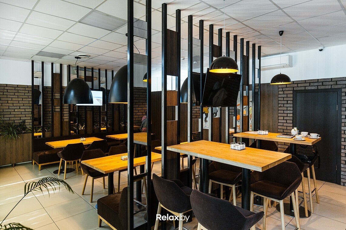 В выходные дни сюда можно заехать на поздний завтрак: утреннее меню актуально с 11:00 до 15:00. Можно заказать испанский, французский или, например, баварский завтрак (от 14,5 до 17 рублей). Притом напиток (кофе, чай или сок на выбор) уже входит в стоимость.