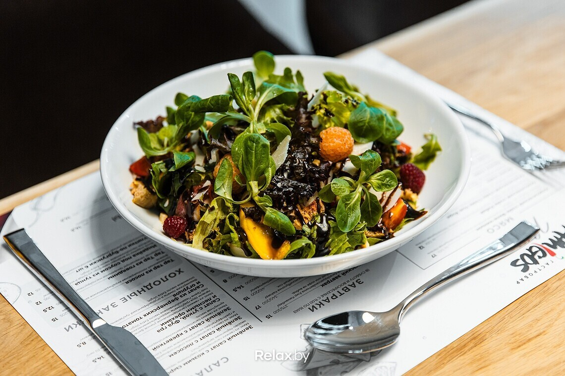 За меню со средиземноморским уклоном отвечает шеф-повар Кирилл Ермак. Акцент сделали на достойном выборе мяса и рыбе. Притом последняя приезжает только по четвергам и в исключительно охлажденном виде — никакой заморозки. Что же касается стейков, то их в меню более 10 позиций от 5 рублей за 100 г.