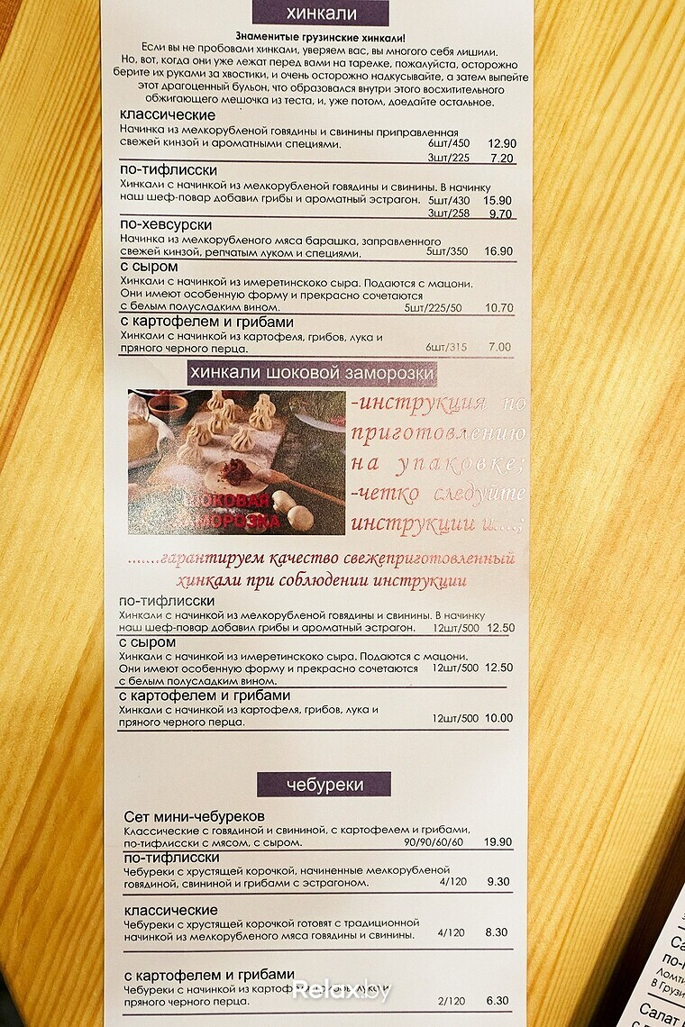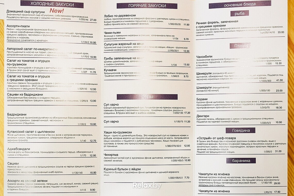 Однако главная здесь по-прежнему кухня. В заведении уверены: невозможно готовить грузинские блюда по книжкам. Поэтому шеф-повара разных регионов Грузии, впитавшие кулинарное чутье с молоком матери, приезжали в Минск и делились рецептурами.Обратим внимание на классику — хачапури по-аджарски. В сети его готовят по так называемому королевскому рецепту: остатки теста убираются из уголков, остается только сыр — это заметно отражается на вкусе.