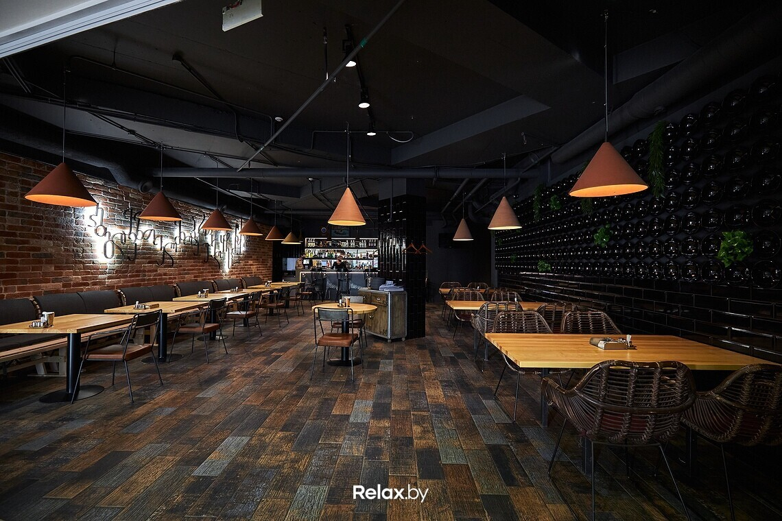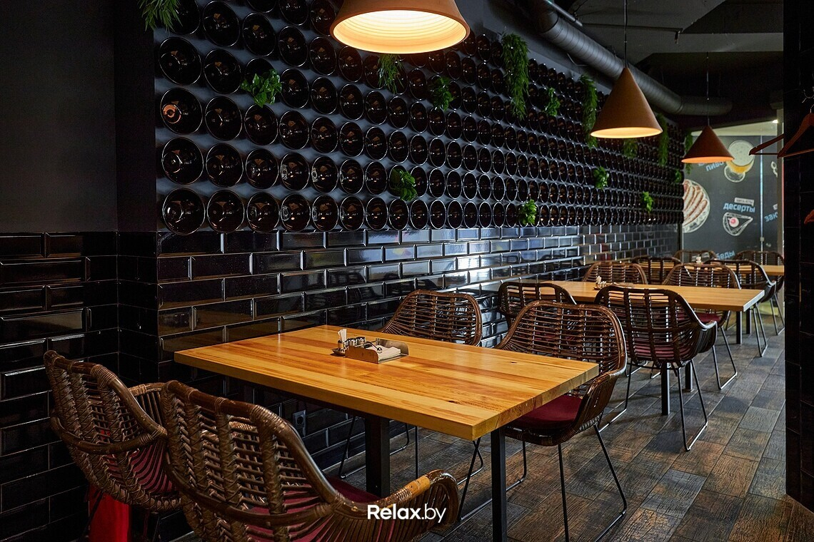 По интерьеру и атмосфере новый «Тифлисъ» получился почти полной противоположностью старого. Если на Толбухина вы попадаете в город конца XIX-начала XX века, то на Победителей это новый, современный Тбилиси. Дизайнеры довольно кардинально поменяли стереотипы о традиционном грузинском интерьере. Много дерева, модерновая мебель, акцентная стена с посудой и главный элемент, притягивающий взгляд, — светящаяся надпись на стене (характерный грузинский шрифт придает ей особый шарм). Большинство деталей создавалось по специальному заказу.