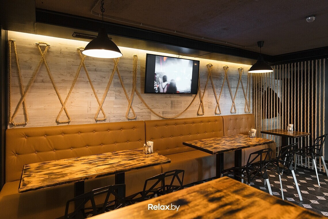 В интерьере смесь лофта и минимализма. Вечером ключевую роль в восприятии пространства играет подсветка. В остальное — смесь лофта и минимализма, обилие дерево, и серая гамма в качестве ключевой. К слову, в «Последней спичке» есть XBOX и vip-комната. Готовят здесь как классические европейские блюда и закуски, так и модную нынче Азию (не только в виде суши). Так можно заказать поке, том ям или фунчозу, но здесь же увидите драники со сметанкой, бутерброд с селью и луковые колечки.
