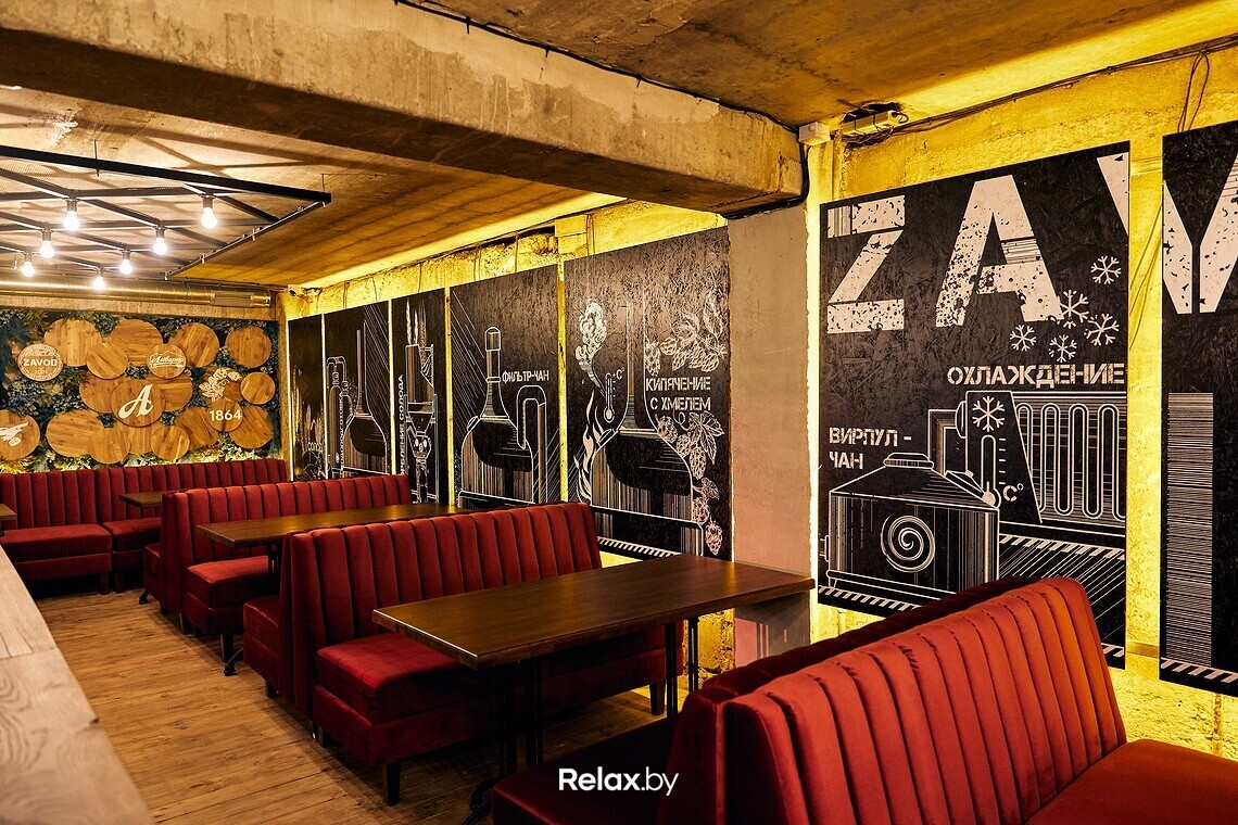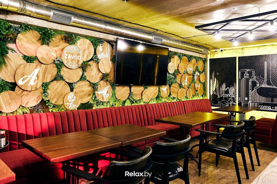 Пива на кранах порядка 12 позиций, но ассортимент еще в процессе формирования. Отдельно стоит отметить 3 вида фирменного сорта ZAVOD: пока это светлое, темное и нефильтрованное пенное. С декабря арт-директор обещает эксклюзивные поставки: в гастропаб будут завозиться линейки пива, которые в Беларуси пока нигде не представлены. Что касается остальной алкогольной карты, то это порядка 25 видов виски, авторская коктейльная карта от шеф-бармена Владислава Руселевича, фирменные настойки собственного производства.