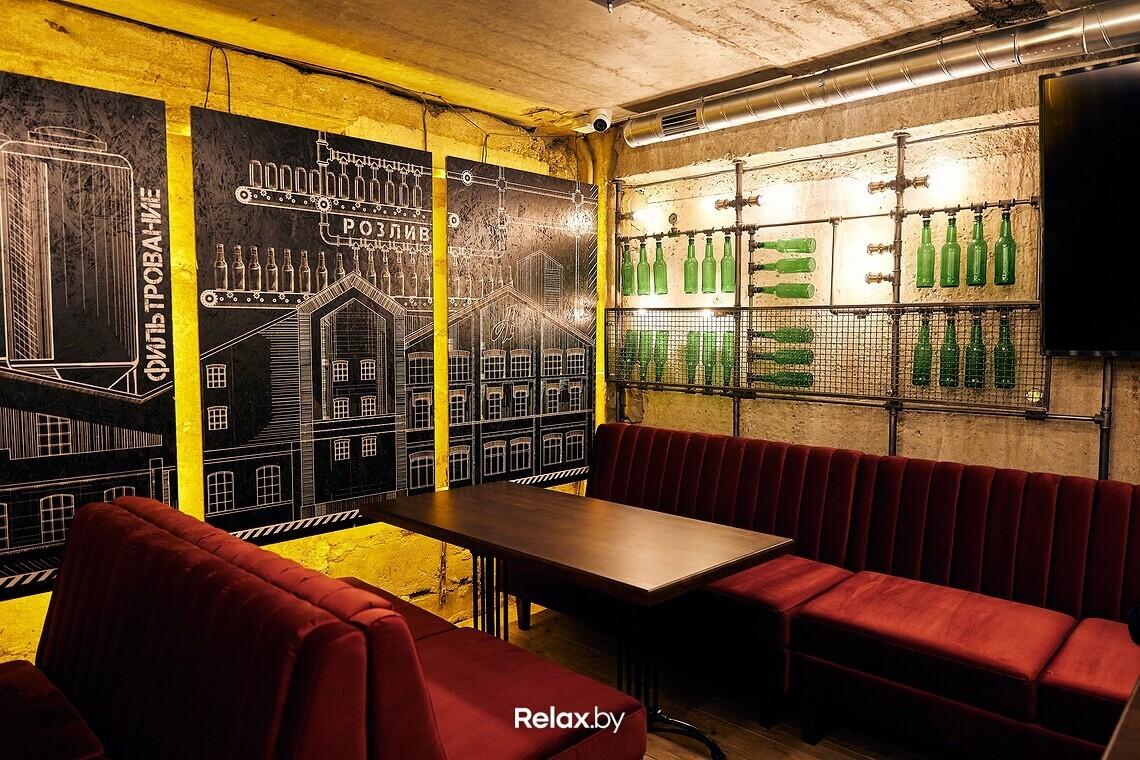 По стилю заведение логично выполнено в стиле индастриал с очевидными элементами лофт. Из фишек — на стенах большого зала можно увидеть последовательность приготовления пива от бочки до розлива и склада. В заведении много металла, бетона и дерева. Большое количество плазменных экранов говорит о том, что значительно внимание здесь будут уделять просмотру спортивных трансляций. Влад отмечает: