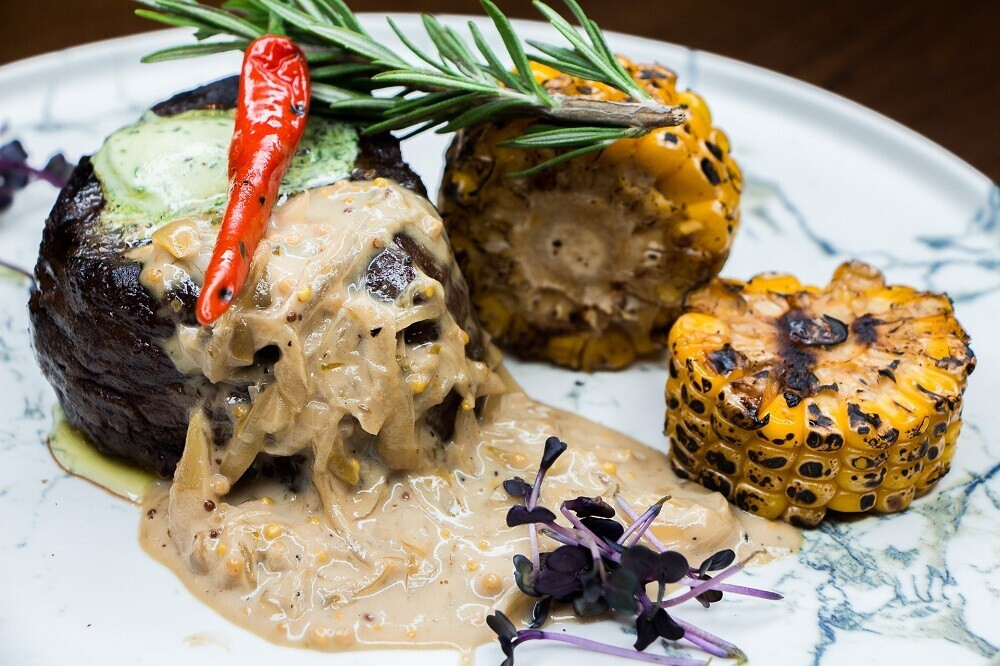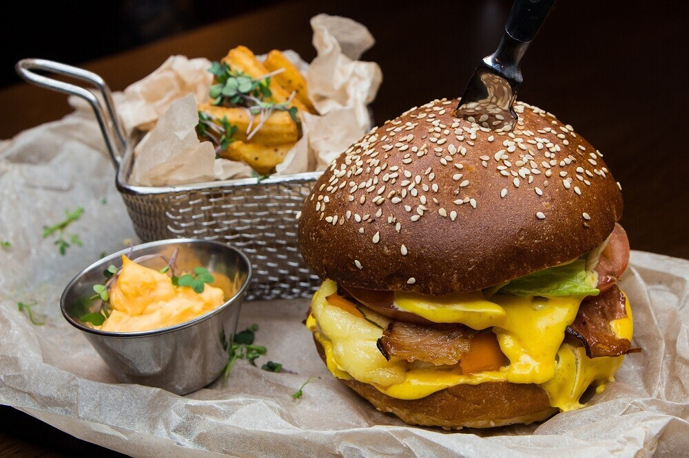 Меню получилось абсолютно космополитичным. Здесь микс популярных позиций из итальянской, немецкой, мексиканской, белорусской, русской и других кухонь. Однако определенный уклон у меню все-таки есть — шеф-повар Сергей Крисенков делает ставку на мясные блюда. Обыграли в меню и пивной формат заведения, поэтому напиток есть в рецептуре многих позиций: например, ирландский пирог с мясом под сырно-пивным соусом, филе миньон с луково-пивным соусом или даже мороженое в пивном кляре.