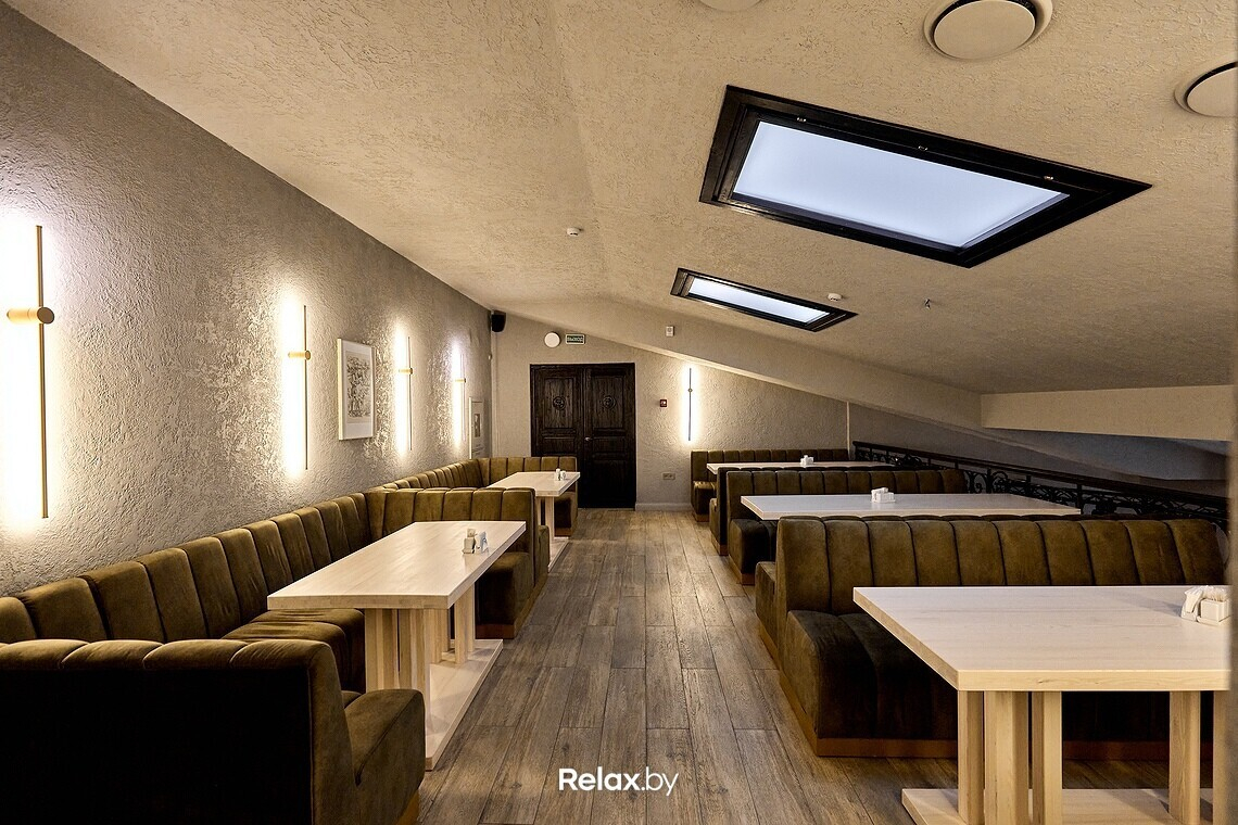 В интерьерах залов закрывшегося «Грай» сочетались разные исторические эпохи: от золотых времен Великого Княжества Литовского до расцвета шляхетной культуры и искусства нового и межвоенного времени. В центре комплекса находился просторный танцпол и сцена для выступлений артистов. Во многом планировку и зонирование сохранили и в Lidbeer Bar «Легенда». Залы выглядят современно и, пожалуй, не побоимся сказать, что это один из самых стильных проектов всей сети. При этом некоторые белорусские штрихи здесь сохранили: например, роспись стен и мебели в одном из залов (на фото ниже).