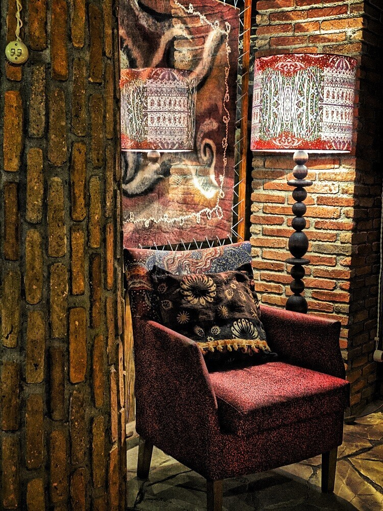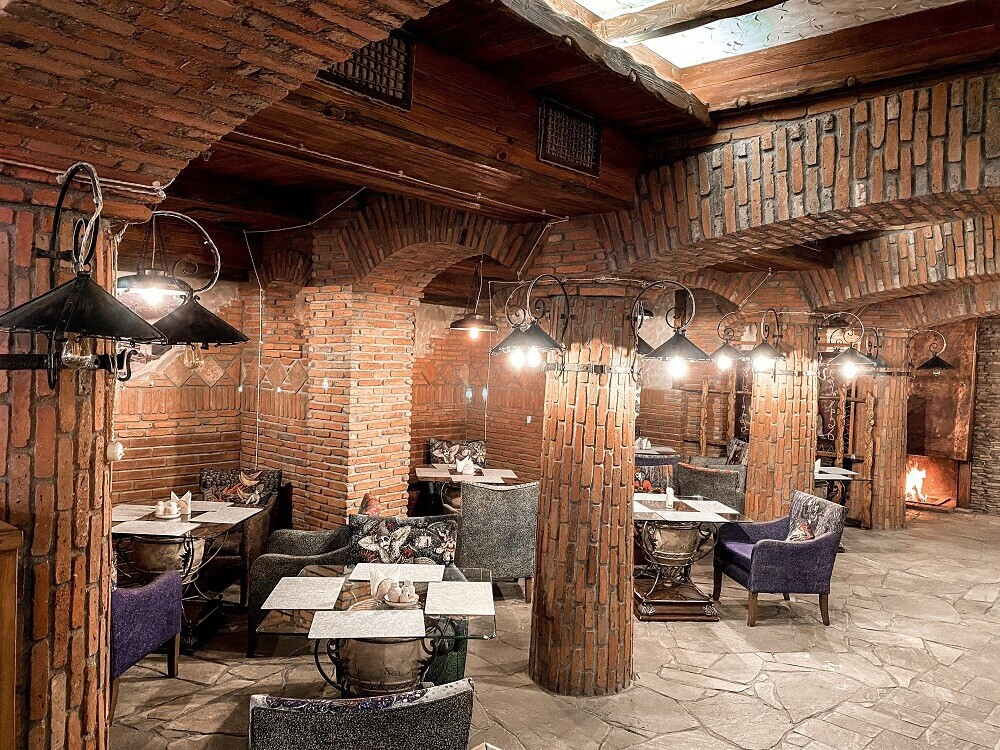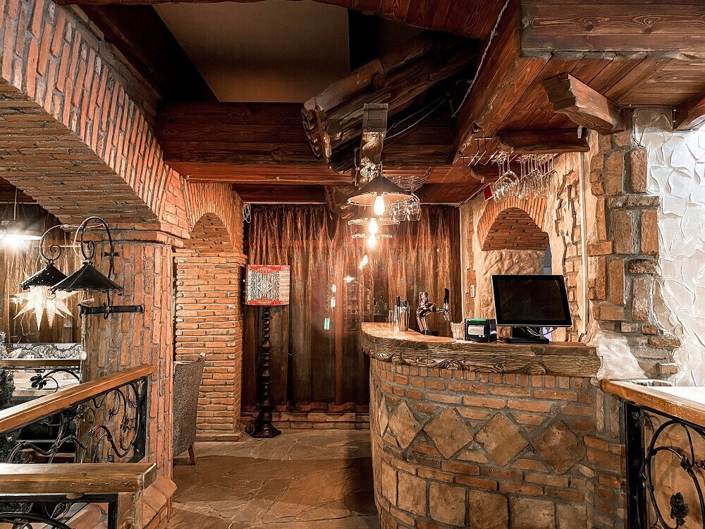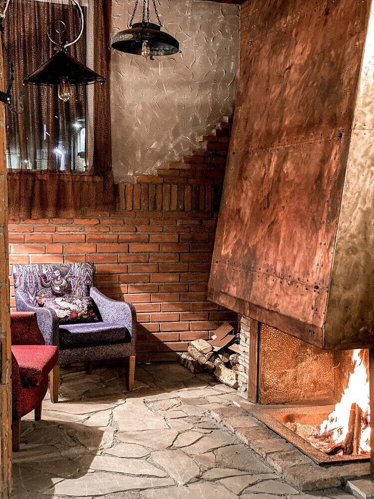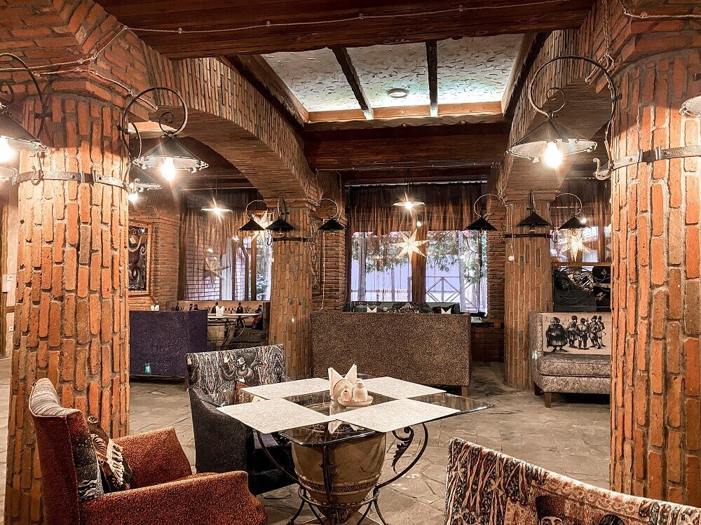 Учредители нового места решили оставить без изменений тот самый зал с камином, фресками на кирпичных стенах и роялем, на котором по вечерам будут играть живую музыку. Камерное зонирование, мягкая посадка, много уютного текстиля и кованых элементов. Вечером при свете камина появляется ощущение, как будто вы не в центре Минска, а где-то за городом.