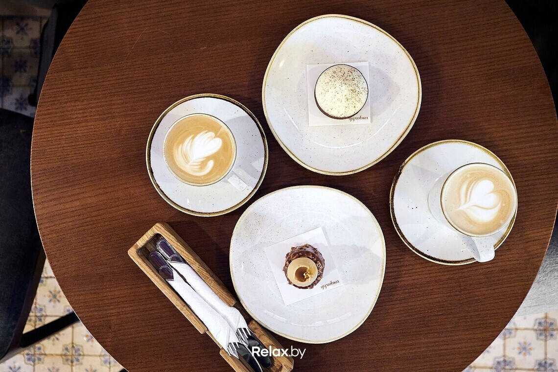 Цены на напитки средние по городу, а в десертной карте — продукция собственной кондитерской. Ценник средний, на некоторые позиции даже ниже среднего по городу. Попробовать можно «Картошку», торт «Чауса», классические «Медовик» и «Наполеон», «Мюнхен» или, например, «Красный бархат».