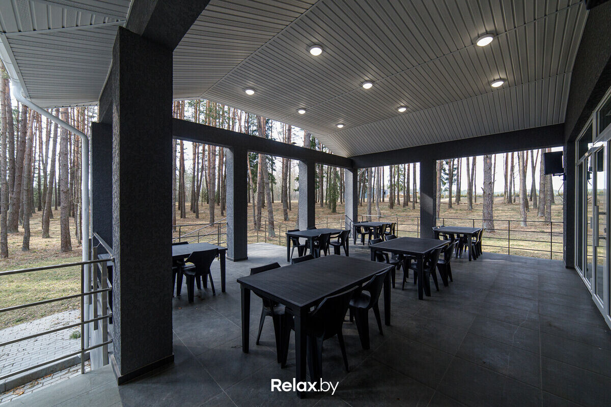 Рядом с беседкой обустроен плавательный пруд, где декоративный водоем удачно сочетается с практичностью бассейна с большой площадкой для отдыха на шезлонгах в летнее время. В нем забетонированное дно и различная глубина, предусмотренная для детей и взрослых. А за территорией комплекса можно прогуляться к большому лесному озеру с обустроенными мангальными зонами, где можно воспользоваться платными услугами рыбалки.