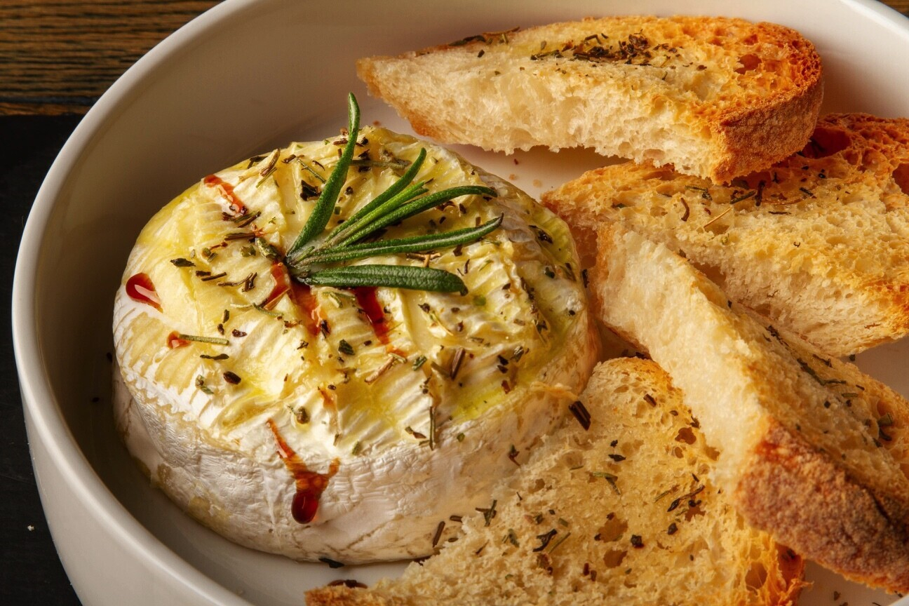 Камамбер запеченный с трюфельным маслом и прованскими травами — 17 руб.;