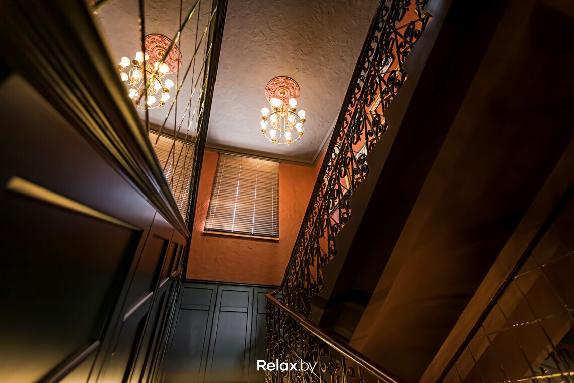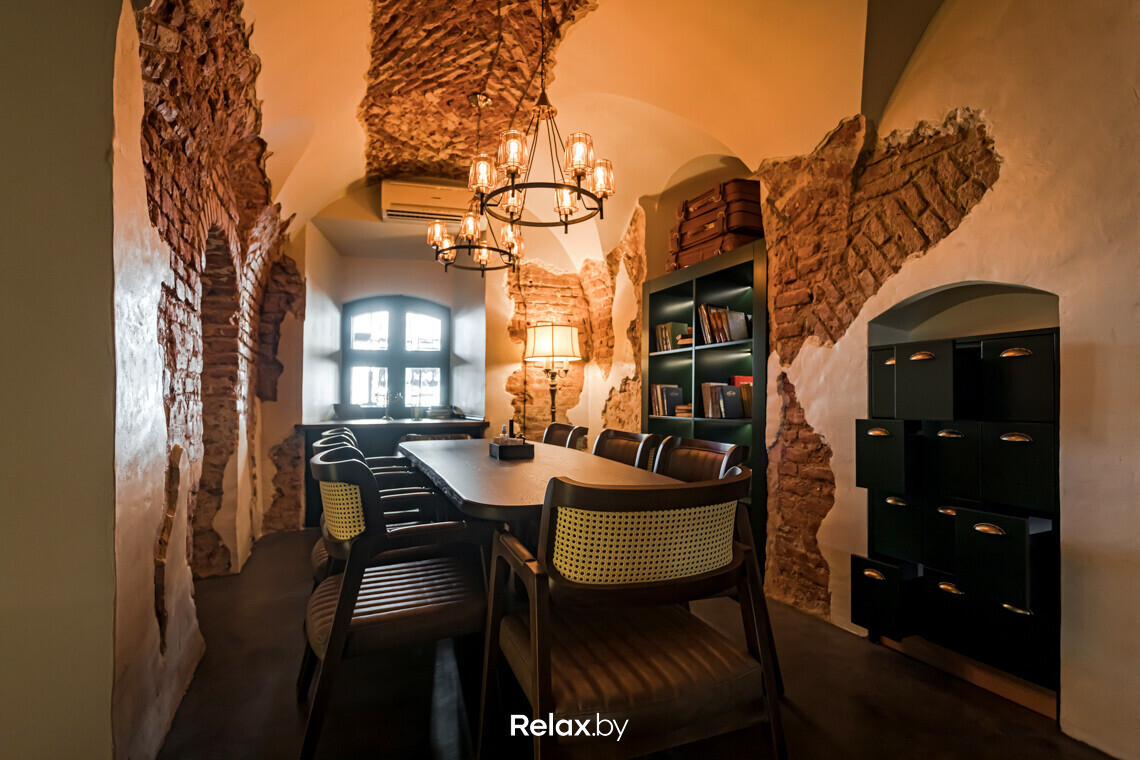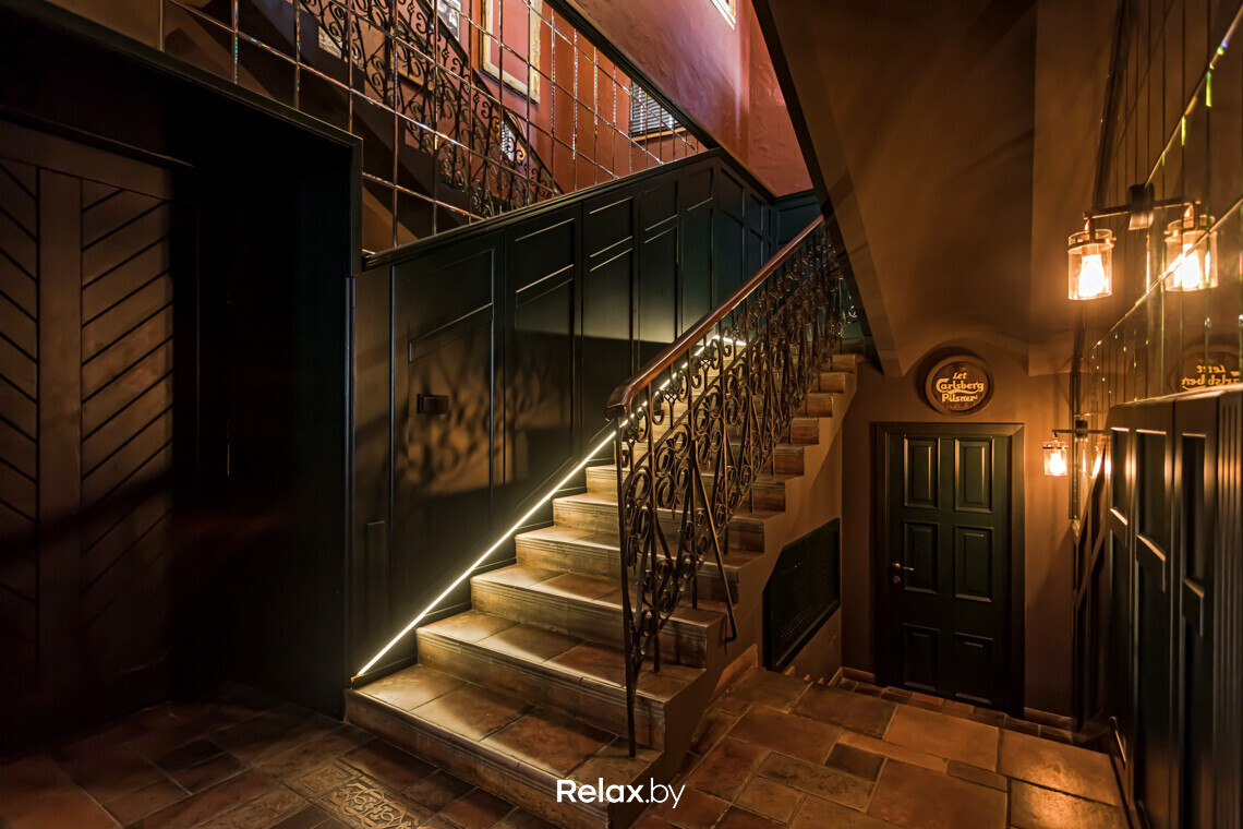 — Идеи для интерьера часто подсказывает сама архитектура пространства, — говорит Алена. — Так в случае с Patrick ресторан находится на одной из самых старых улочек Минска: залы здесь плавно перетекают из одного в другой. Опыт с похожими исходными данными мы уже имели: на примере «Бульбашей» и «Пены дней». Во всех этих проектах старались сделать все залы в единой стилистике, но в то же время разными по своему посылу и фишкам. Перемещаясь из одного зала в другой, гость постепенно «считывает» атмосферу, глубже погружается в нее.