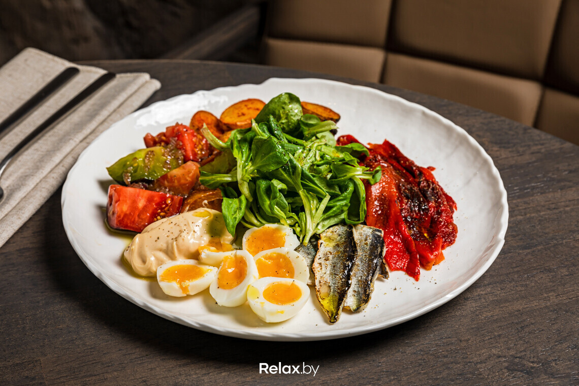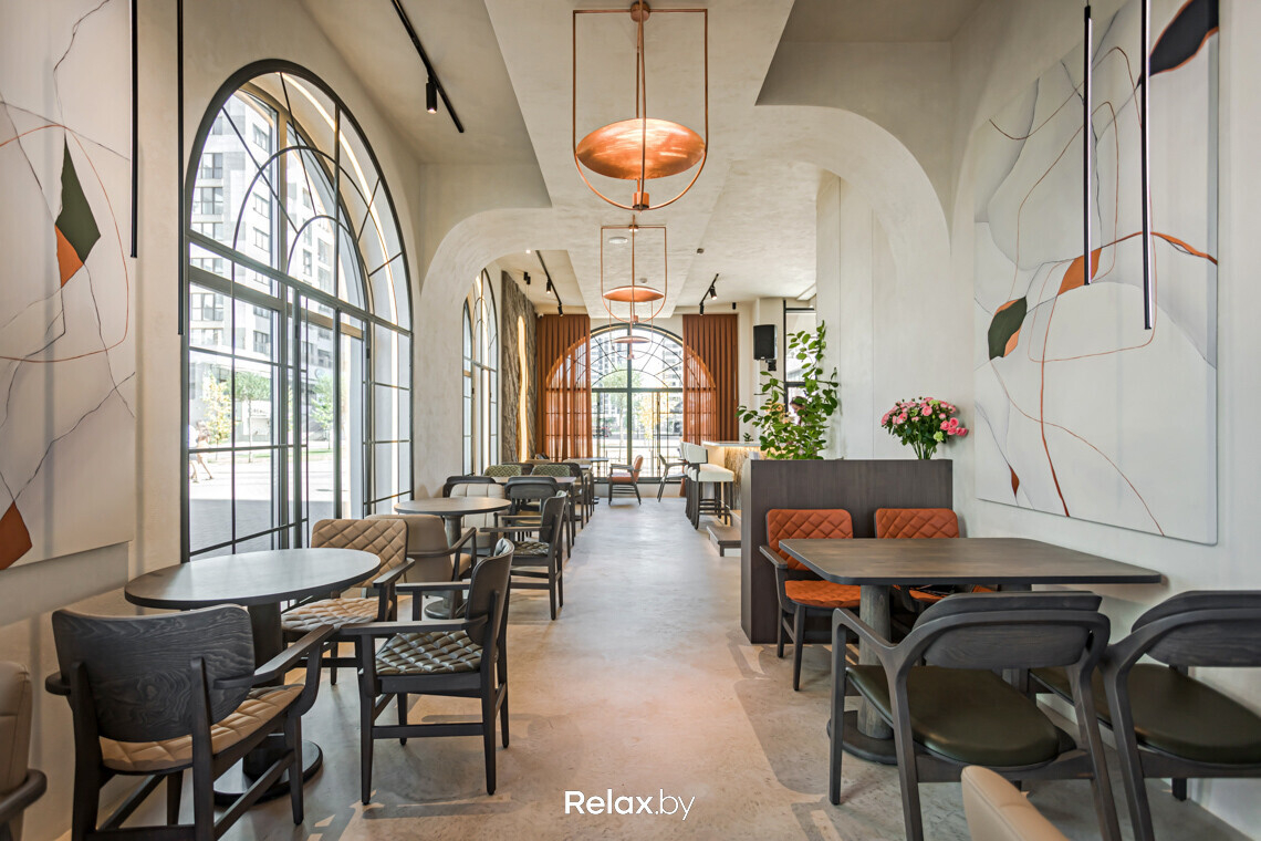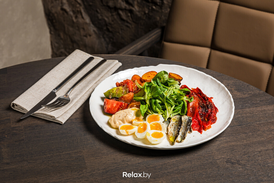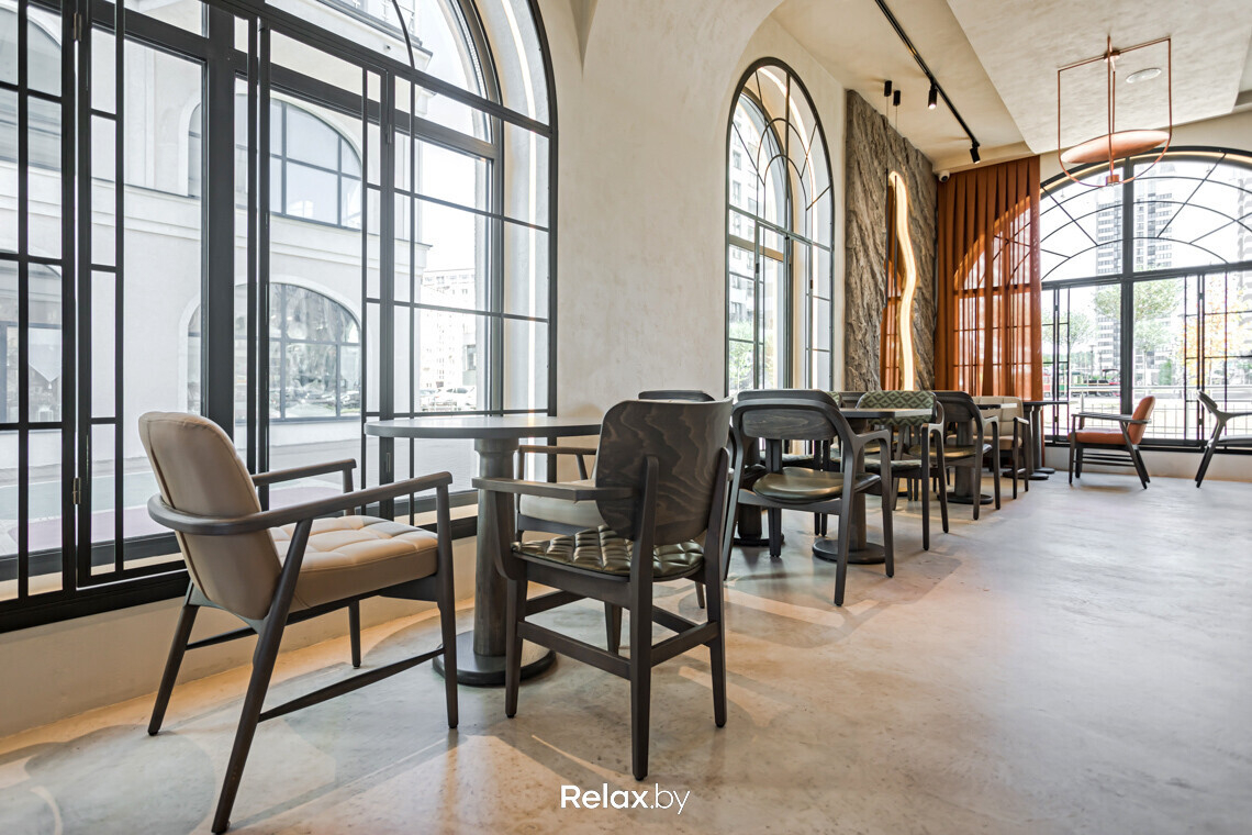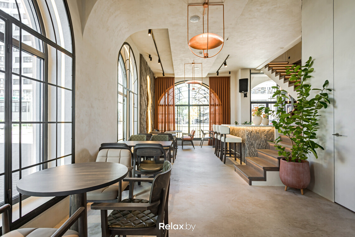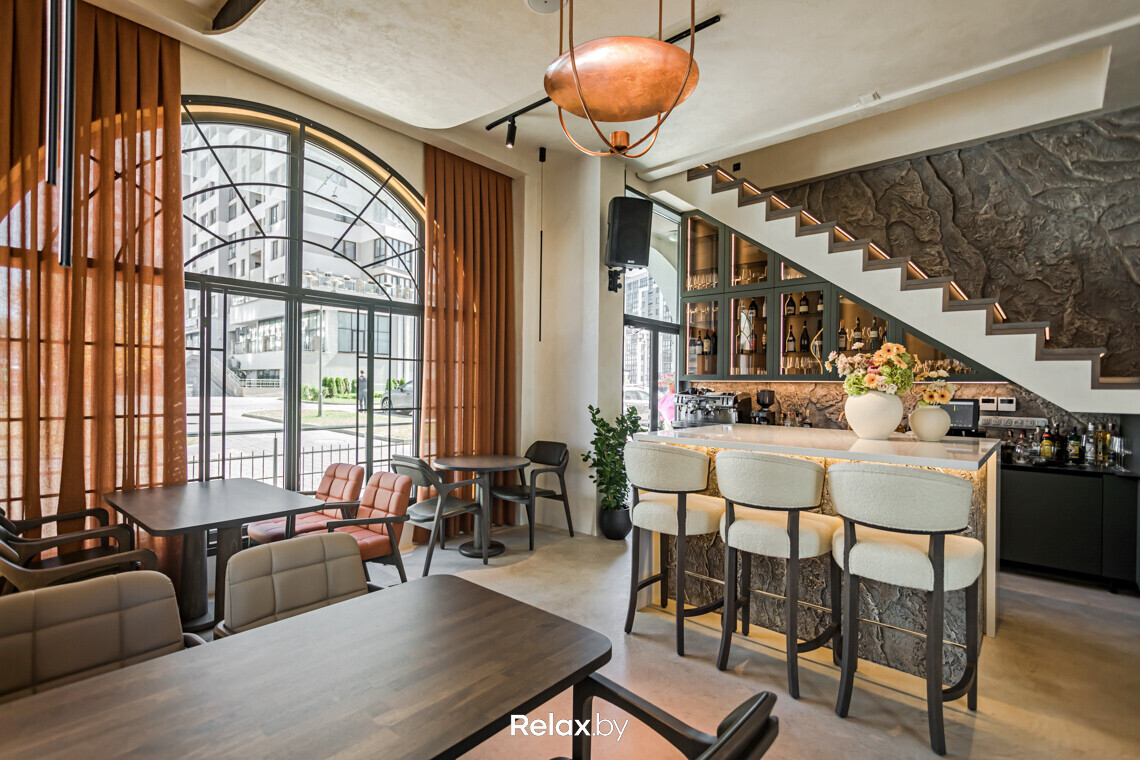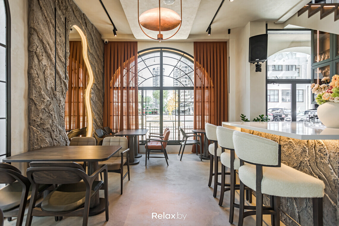 Пожалуй, этот обзор стоит начать с команды. Основатель — Дмитрий Маркевич, известный по загородной площадке Royal Hall. Кухню ставил Сергей Ворошилов, которого фудис знают сначала по гомельскому проекту Taste, затем по гастрономичному Darling и, конечно, по пинсерии «Жуй». За винную карту отвечает Василий Хлобыстов — штатный сомелье проекта.