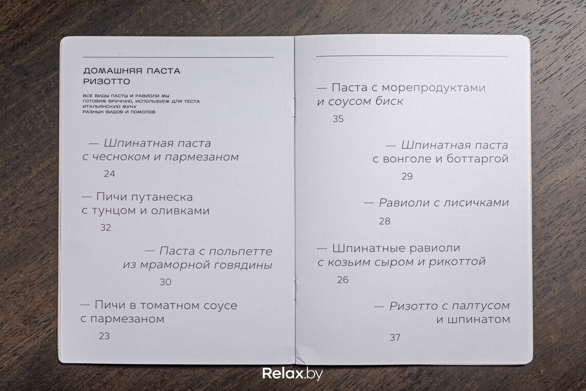 Несложно догадаться, что в винной карте главная также Италия. Причем любопытный момент: все позиции расположены по географической последовательности страны, чтобы вам было проще определиться с регионом. Штатный сомелье не только порекомендует, но и расскажет историю выбранного вина, даст советы по его правильной дегустации.