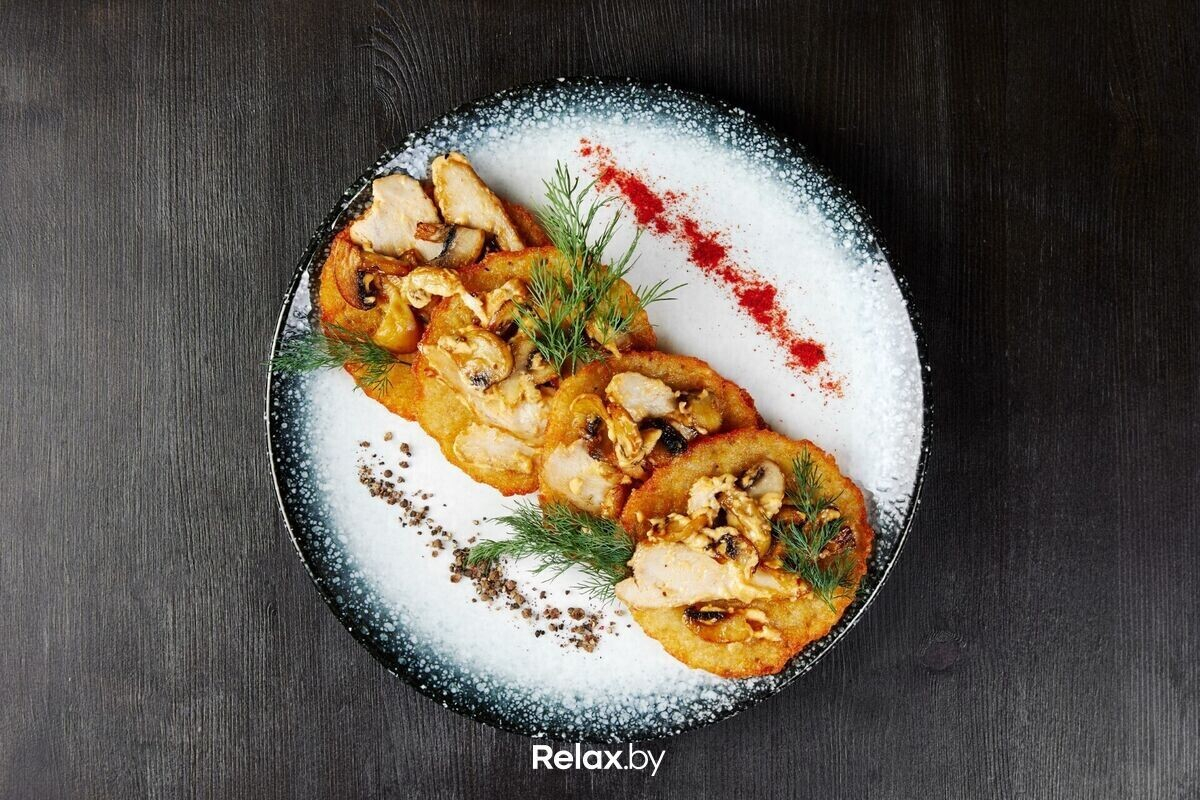 Меню в заведении космополитичное: шеф-повар собрал популярные блюда разных стран. Не обошлось и без авторских позиций. Так рекомендуем обратить внимание на тартар с коньяком и трюфельным маслом, стейк мясника, кайфбургер и картофель по-техасски.
