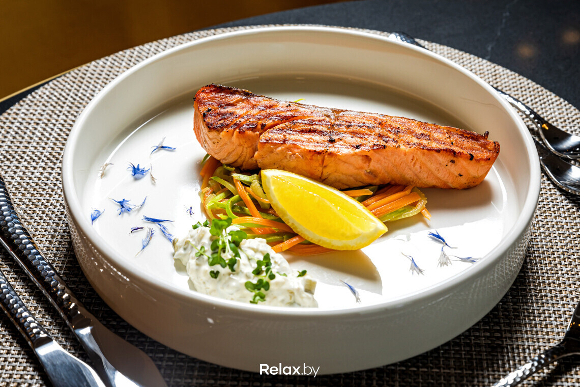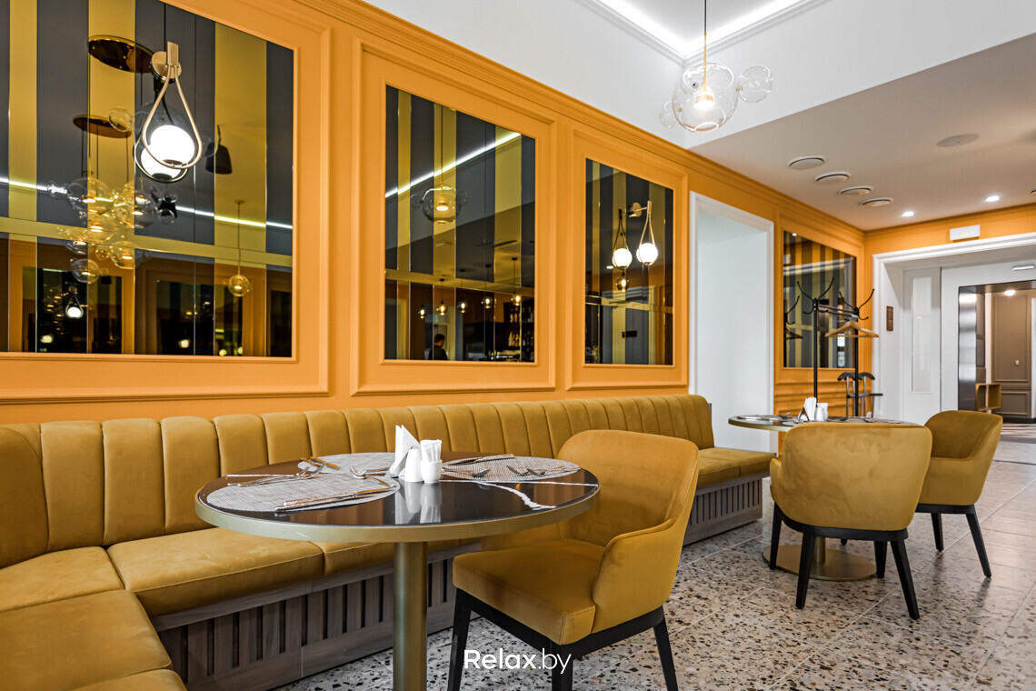 Меню шеф-повар характеризует, как casual food: простая, понятная еда без усложненного авторского прочтения. Но при этом не исключает, что в будущем в ресторане появятся и спецпредложения. Помимо европейской классики, представлена и белорусская кухня. Порядка 70% продуктов, из которых готовят, — локальные. Ресторан, конечно, открыт и для жителей города: например, с 7:00 здесь можно позавтракать. Ценник фиксированный: за 54 руб. можно выбрать несколько блюд по вкусу и напитки.