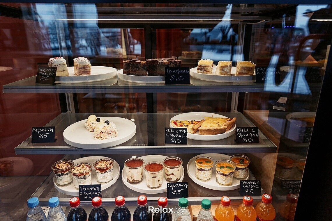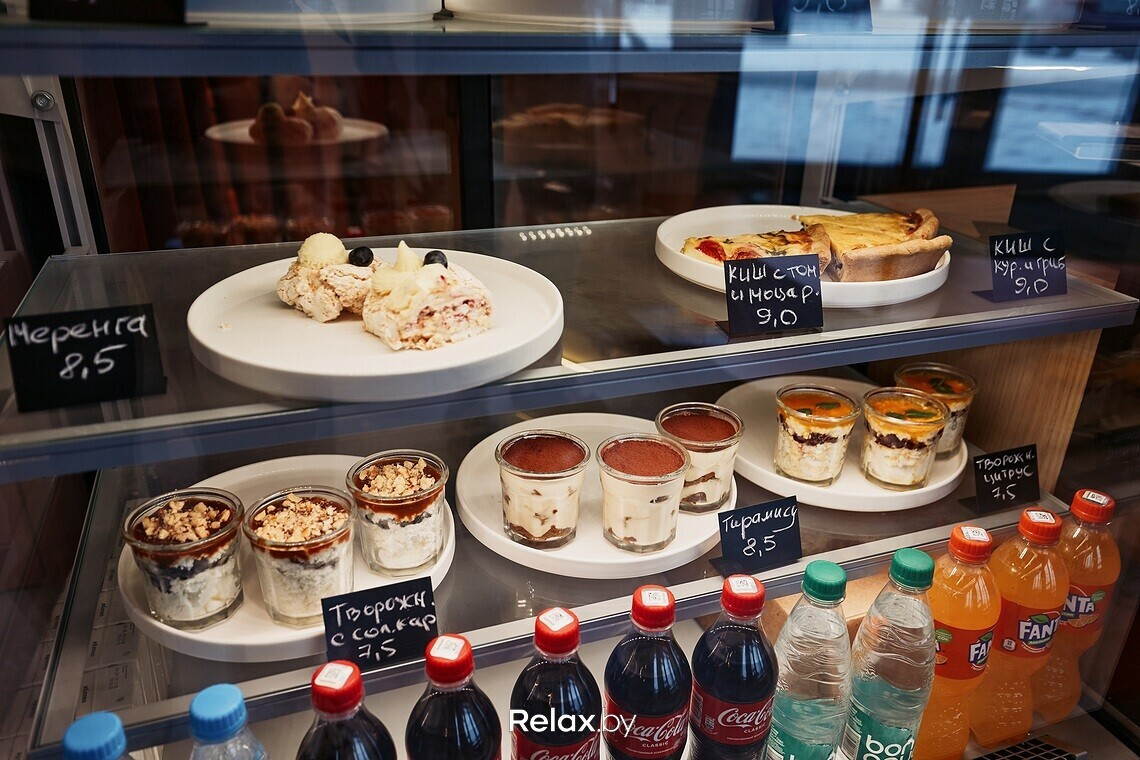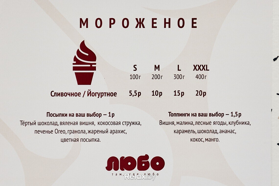 Можно заглянуть сюда и как в кофейню: карта напитков достаточно широкая, а на витрине представлены авторские десерты. Однако главная гастрономическая фишка здесь, пожалуй, мороженое. Подают йогуртовое и сливочное в 4 размерах (от 5,5 до 20 руб. за порцию). За 1 руб. можно выбрать посыпку, а еще за 1,5 руб. — топпинг.