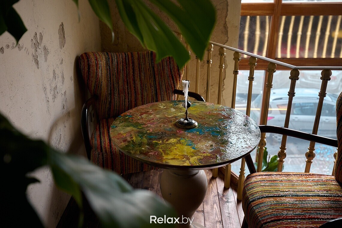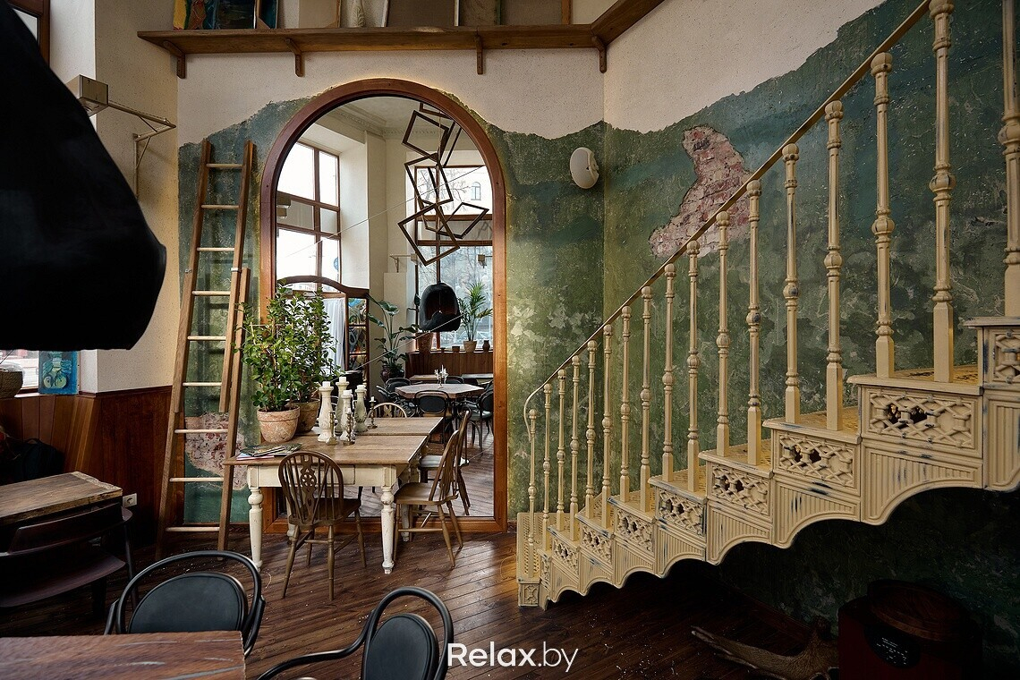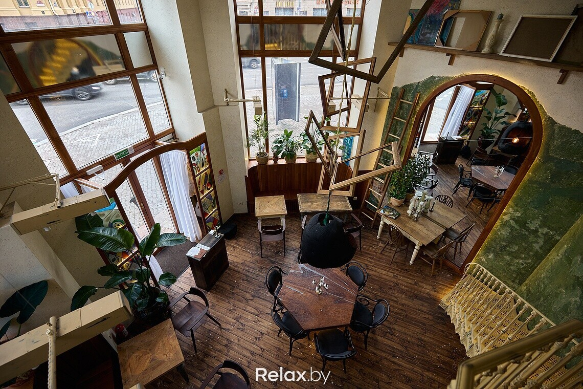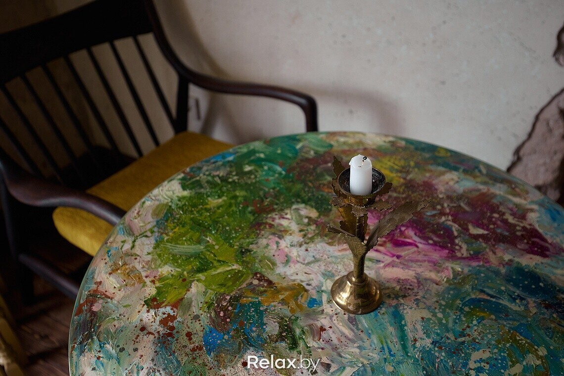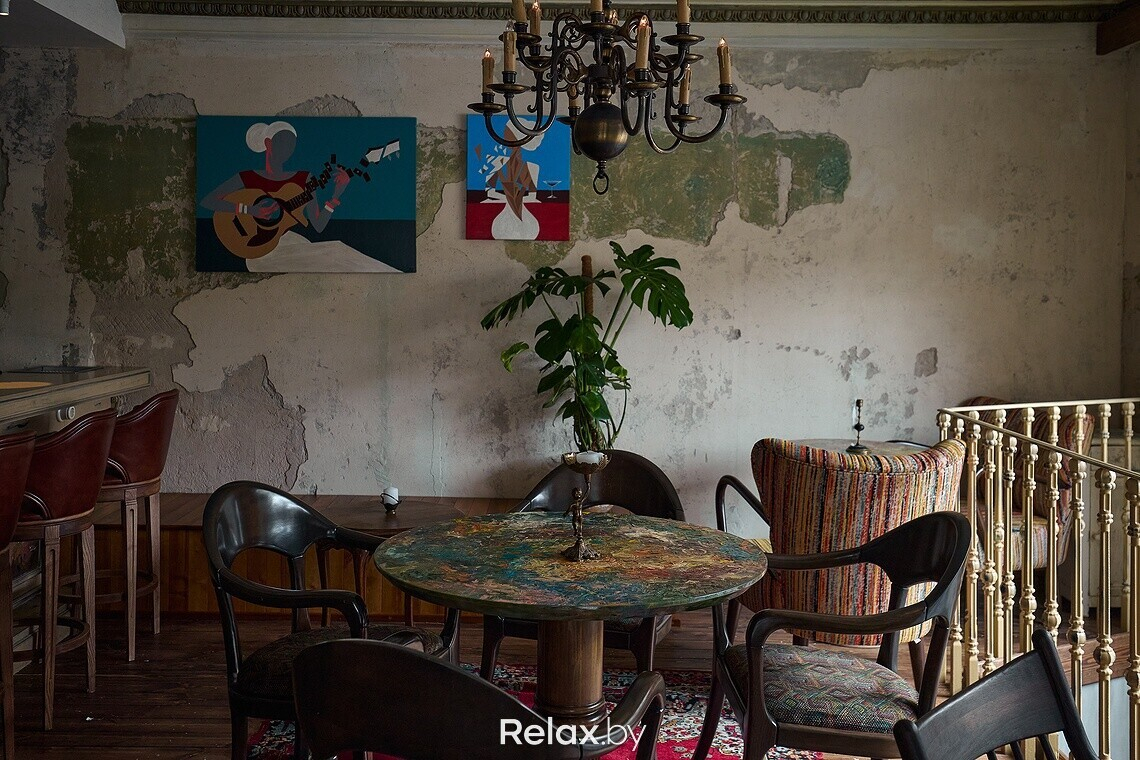 Конечно, на дизайн повлияло и помещение. А для условной «мастерской», которая уже была в моей голове, нужны были определенные стены. Я достаточно много ездил по мастерским белорусских художников: где-то они более антуражные, где-то менее. Но почти везде высокие потолки, и это было важным моментом. Наши другие заведения находятся недалеко от этой локации, поэтому я часто проходил мимо этого дома на Независимости и присматривался к помещению. В какой-то момент оно освободилось: так все и началось.