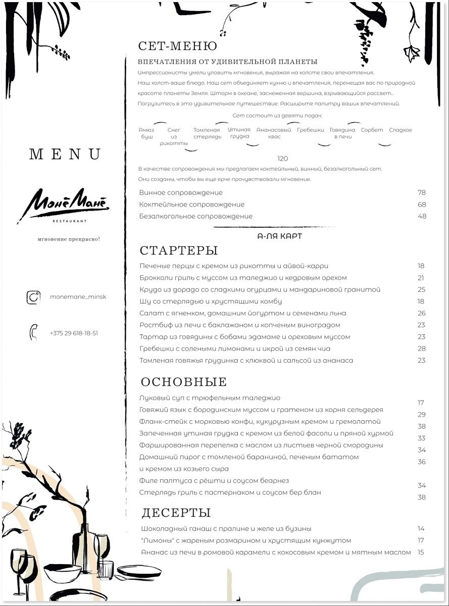Ресторан «MoнеMaне» относится к сети, в которую входят наверняка знакомые вам заведения Embargo, «На пляже», Leone, «Легендар» и свежий винный проект «Вино. Ритмы. Горожане». Все кардинально разные и по формату, и по настроению.