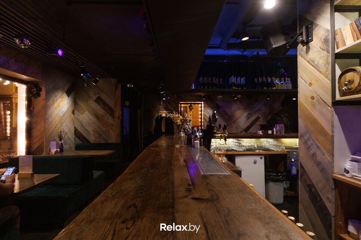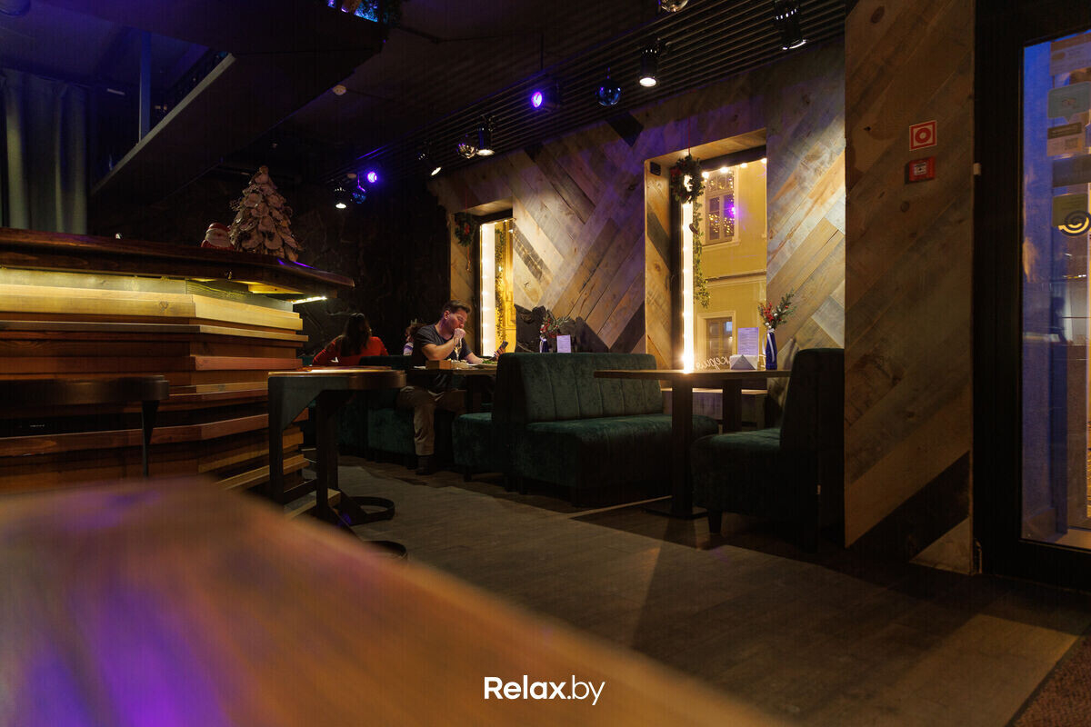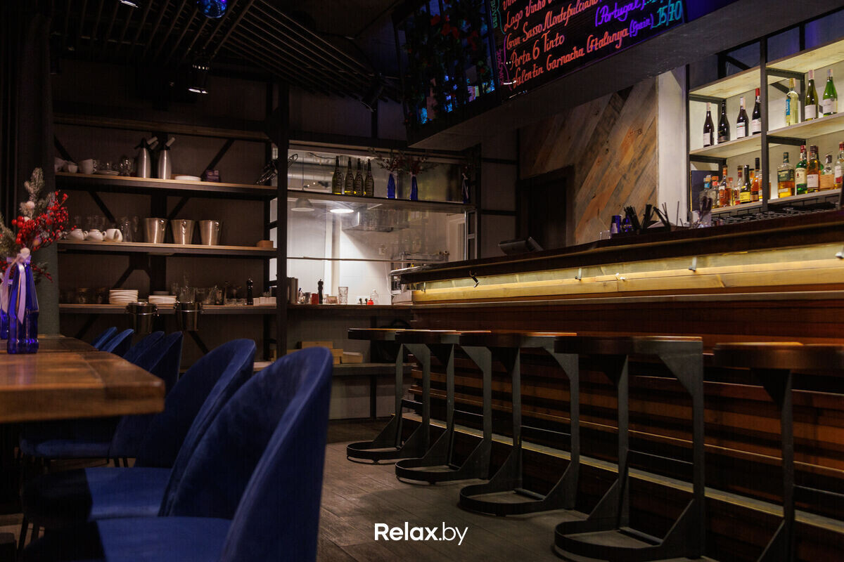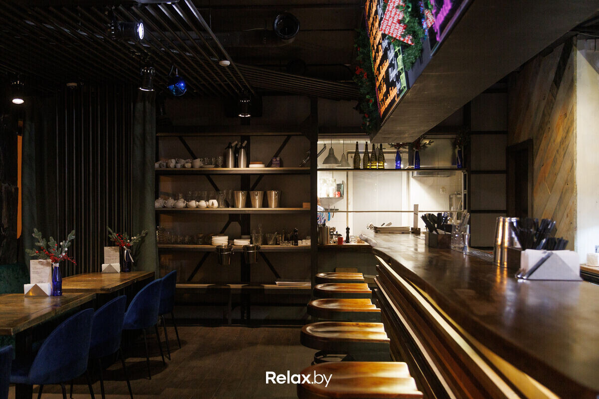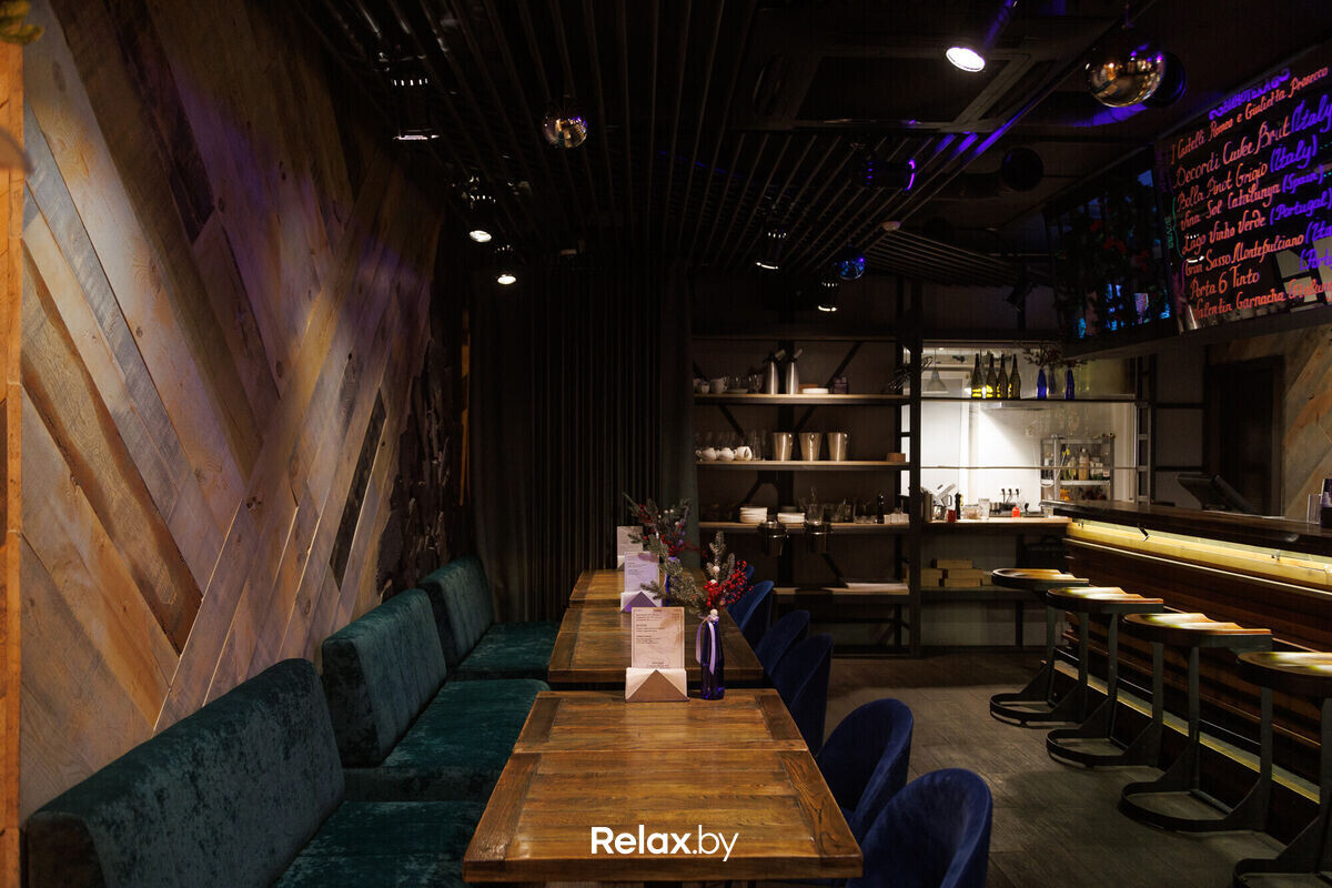 Интерьер Hedonist сочетает два ключевых элемента — дерево и темный камень. Барную стойку и стулья делались под заказ местным мастером, барное меню в заведении органично вписано на зеркалах над баром. Повышают градус стиля мягкие темно-зеленый диваны и яркие прожектора, направленные на столы.
