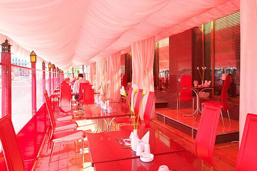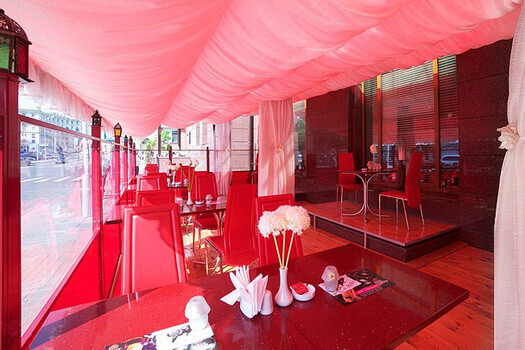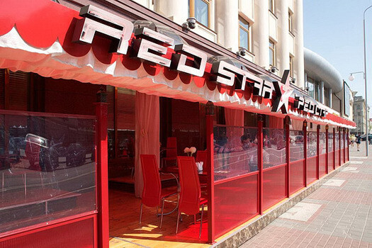 Летнее кафе Red Star расположилось в самом центре Минска в одном из самых фешенебельных отелей ― Crowne Plaza Minsk. Уютная терраса ― отличное место для разных встреч. Здесь можно выпить виски и выкурить сигару с бизнес-партнером, поболтать с друзьями за бокалом пива, провести вечер в кругу семьи или насладиться романтическим ужином в компании любимого или любимой. Вечером, в свете огней большого города, красно-белые тона, в которых выполнена терраса, особенно настраивают на романтический лад. Свечи на столике расслабляют, а приятная музыка поднимает настроение. Кажется, что время остановилось, и весь мир принадлежит только вам двоим.