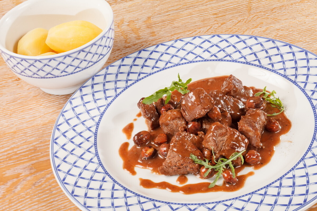 Тушеное мясо с различными добавками — это еще разнообразие кухни Несвижской резиденции Радзивиллов.
