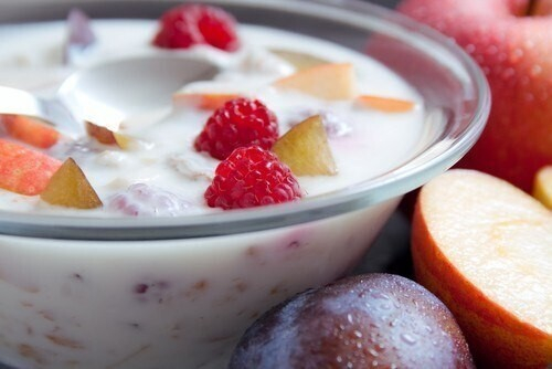Завтрак: свежие фрукты под лимонно-мятным йогуртовым соусом