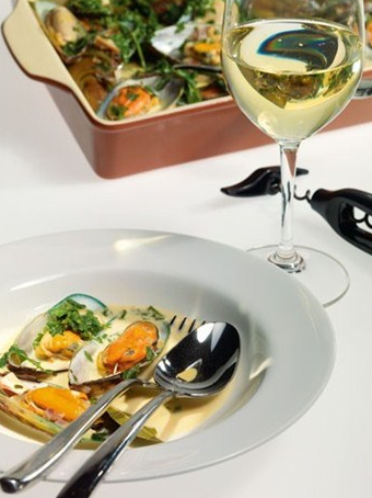 Мидии в ракушках с белым вином