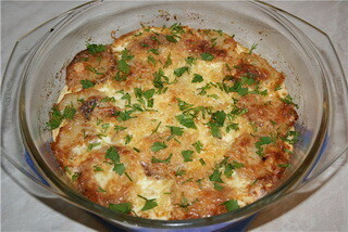 Картофель очищаем и нарезаем тонкими ломтиками. Теперь готовим сметану – это просто. Надо всего лишь смешать ее с 1 ложкой куркумы, чтобы она стала желтого цвета. И снова возвращаемся к картофелю и выкладываем 1/3 на смазанный противень или сковородку. Посыпаем приправами и зеленью. Сверху выкладываем слой из 1/3 сыра, поливаем частью сметаны и маслом. Повторяем такие слои еще 2 раза. Все три полученных слоя в итоге накрываем фольгой или крышкой и ставим в духовку на 40 минут при температуре 200 градусов. Под конец снимаем с блюда фольгу/крышку и оставляем готовиться в таком виде еще 10 минут. После этого ваша запеканка будет полностью готова!