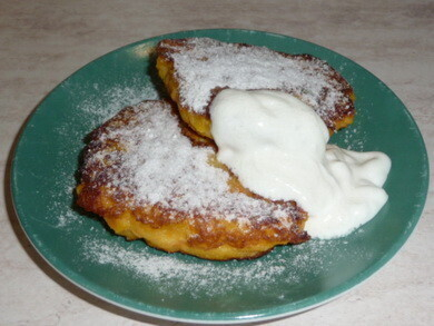 Подавать тыквенные оладушки со сметаной и сахарной пудрой. Приятного аппетита!