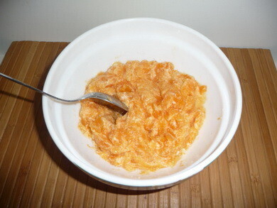 Тыквенную мякоть необходимо смешать с яйцом и щепоткой соли.