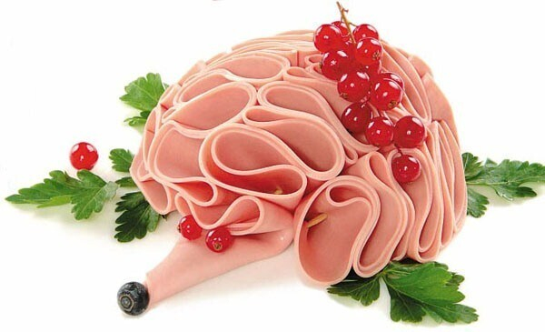 Если вы все же очень хотите приготовить украшение из мяса, то отойдите от идей мясных розочек. Немного фантазии и... Почему бы не сделать из нарезанной ветчины ёжика?