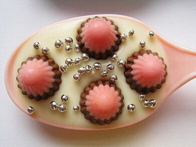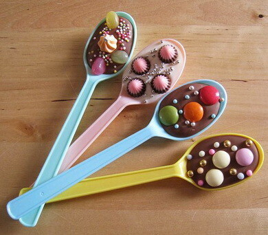 Вам понадобится: цветные пластмассовые ложечки, шоколад, сладкие украшения.