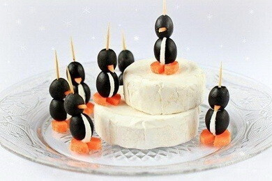 Маслины и оливки всегда были универсальным украшением для стола. Из них вырезают маленьких паучков, глаза для забавных рожиц, просто накалывают на зубочистки. Мы предлагаем вам сделать оригинальных пингвинов из маслин и сыра.