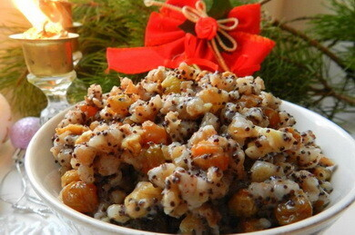 Способ приготовления: пшеницу перебрать, промыть, залить свежей водой и сварить (можно с добавлением небольшого количества соли) густую кашу. Добавить в нее мак, измельченные орехи и мед (по вкусу). Все тщательно перемешать. На стол подавать негорячей.